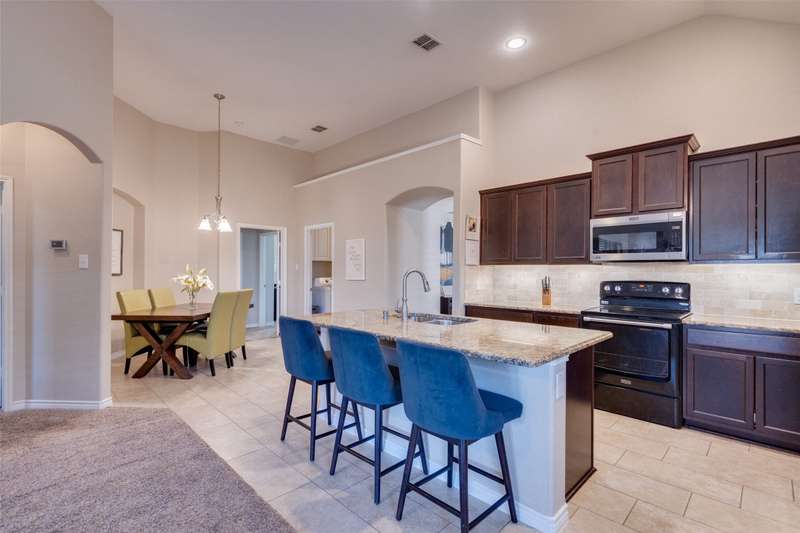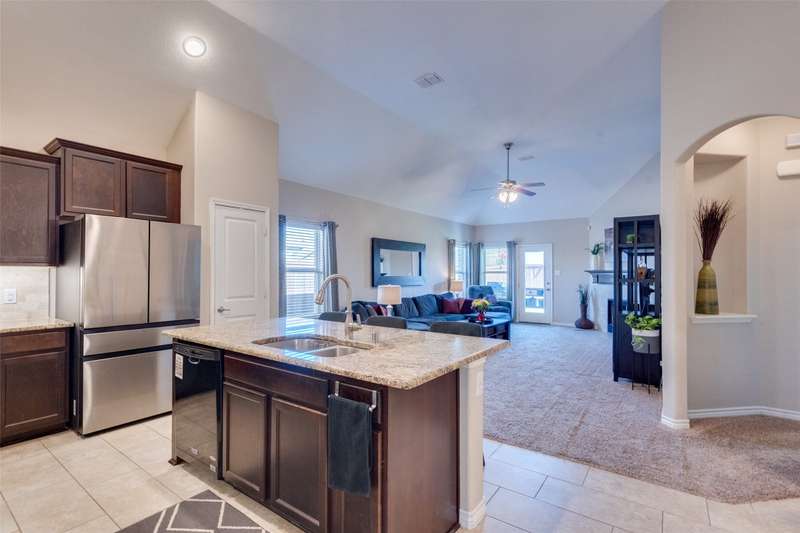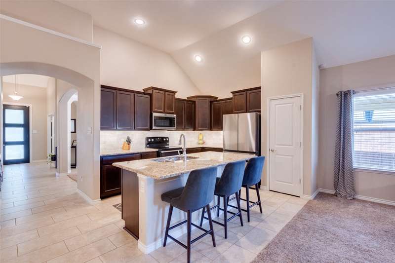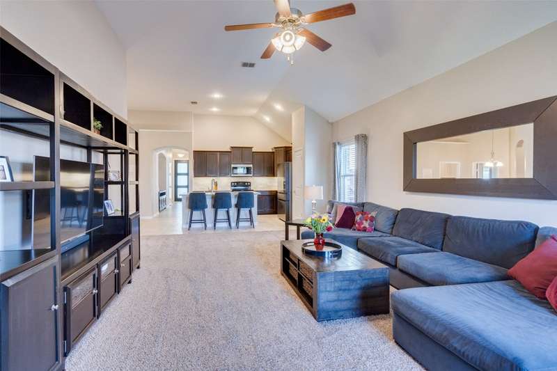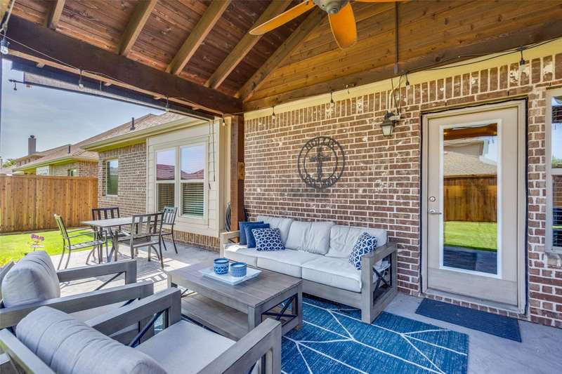 Welcome to this well-maintained 3-bedroom, 2-bath home located in a gated community just minutes from Lake Lewisville and Hidden Cove Park. The open-concept layout features a spacious kitchen with granite countertops, a large island, and stainless steel appliances, ideal for everyday living and entertaining. New AC unit Oct 2024.The primary suite includes dual vanities, a walk-in closet, and peaceful views of the backyard.Outside, enjoy the extended covered patio-extended 2025, perfect for quiet mornings or relaxed evenings. New fence 2024. Community amenities include three pools, a playground, stocked fishing pond, and walking trails. Zoned to Little Elm ISD and conveniently located near shopping, dining, and entertainment.