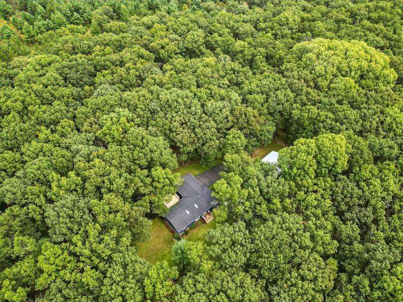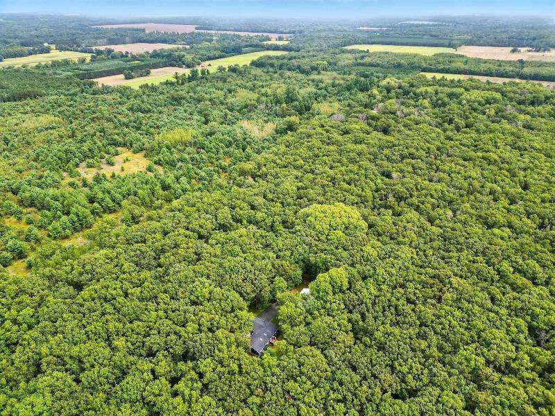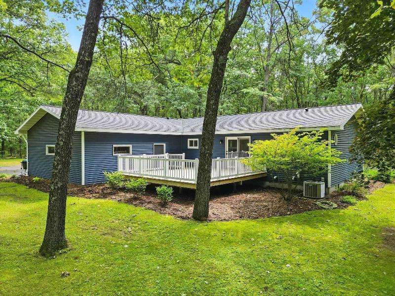 Welcome to your private retreat nestled in the woods on almost 6 quiet acres where the deer and turkeys roam through the oak and pines. This beautiful home has a bright open feel to it and boasts many updates including new roof, siding, porch, deck and skylights in 2022, windows in 2020, a new water heater in 2023, new kitchen appliances in 2021, an updated basement, all you need to do is move in! Did I mention the 30'x60' heated shop with electric, ready for all your toys to call home. Inground irrigation system to keep your yard green and lush. Close to lakes, rivers and all the recreation you could ever want and just a few minutes from town. Don't miss out on this beauty, once you get there you won't want to leave! Showings by appointment only, do not enter property without an agent.