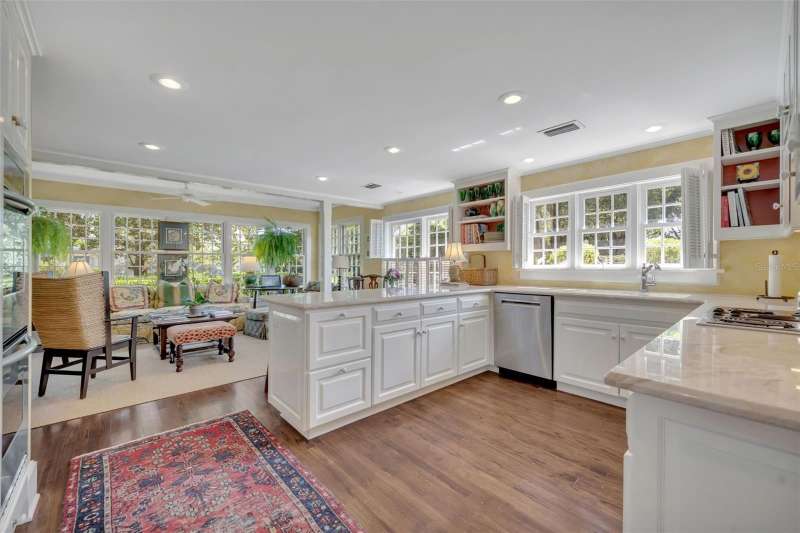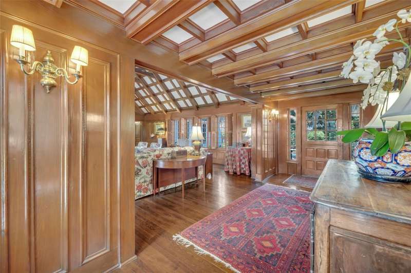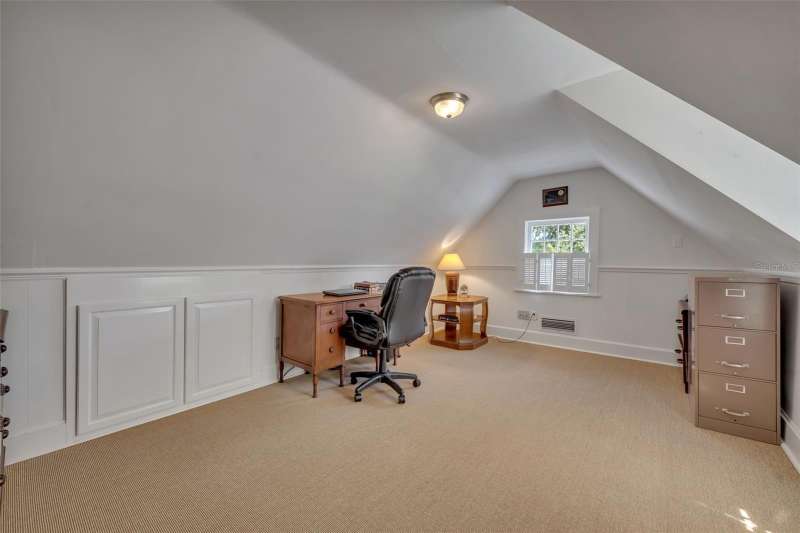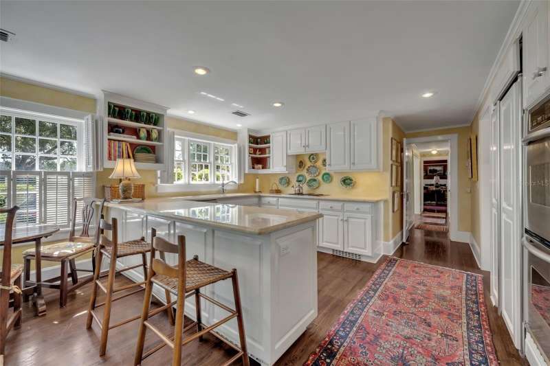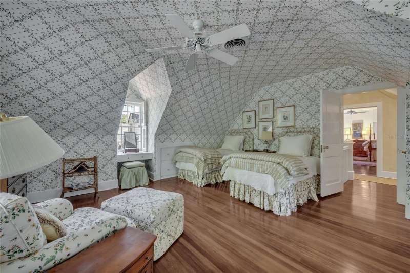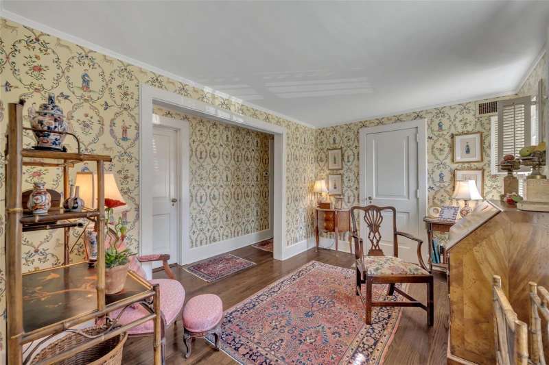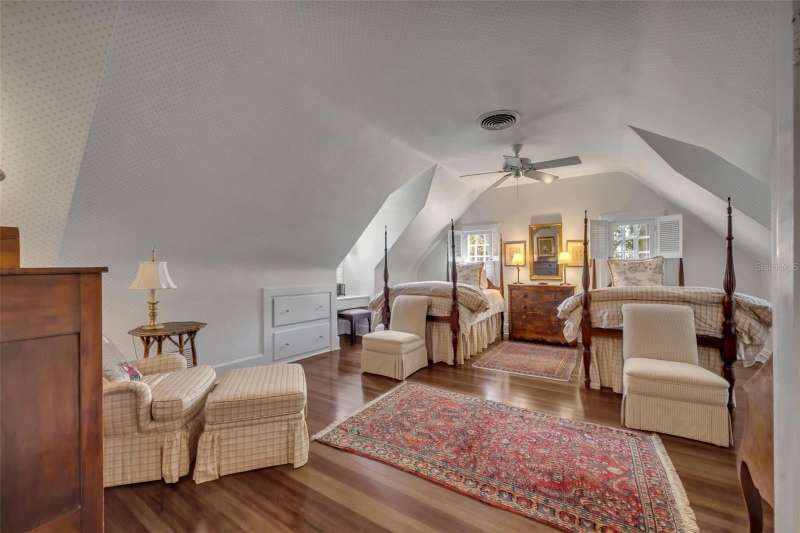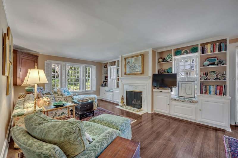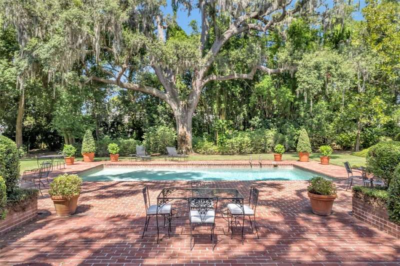 Offered for the first time in over 50 years, this distinguished Winter Park estate is a true traditional gem, nestled on a picturesque brick street and situated on a full 1-acre lot. Exuding timeless charm with a subtle New England ambiance, this residence represents the best of historic Winter Park living—all within walking distance to Park Avenue. This stately 6-bedroom, 5.5-bathroom home offers 5,759 square feet of thoughtfully designed living space, plus an additional 1,859-square-foot unfinished basement that spans the entire length of the home, offering endless possibilities for expansion or customization. Upon entry, you'll be welcomed by coffered ceilings in the spacious formal living room, rich dark oak floors, and one of the home’s three gas fireplaces. This elegant yet inviting room overlooks the lush gardens, making it an ideal setting for both entertaining and quiet relaxation. Adjacent to the living room is a cozy, beautifully appointed den featuring another gas fireplace and natural jute flooring—undoubtedly one of the most beloved spaces in the home. The kitchen is filled with natural light and includes a large casual dining area, a charming butler’s pantry, and direct access to both the laundry room—complete with a full-size refrigerator and half-bath—and the oversized 2-car garage. The formal dining room showcases lattice-framed bay windows with views of the back garden and pool area, creating a warm and elegant space perfect for holiday dinners and family gatherings. The home features two primary bedroom suites on the main level, including one expansive L-shaped suite with its own gas fireplace and views of the pool, gardens, and outdoor terrace. The primary bathroom includes a dressing area and marble finishes throughout. Upstairs, the south wing includes two generous bedrooms with a shared full bathroom, while the north wing—located above the kitchen—offers two additional bedrooms and a charming full bath. The expansive backyard is a private sanctuary, framed by majestic oak trees, bamboo, and thoughtfully designed gardens, with several inviting sitting areas for outdoor relaxation. An extra-large swimming pool completes the setting—perfect for warm Florida days or evening gatherings under the stars.