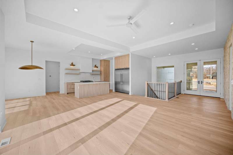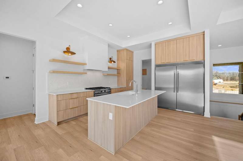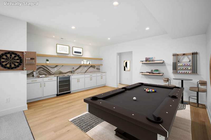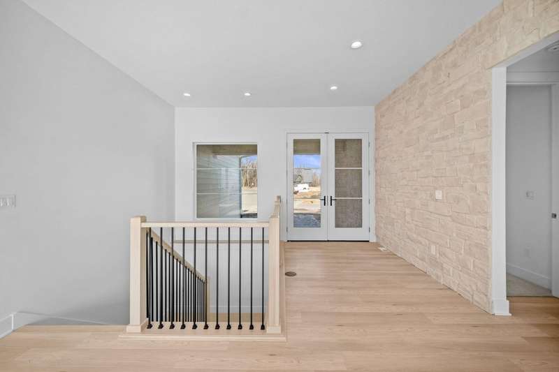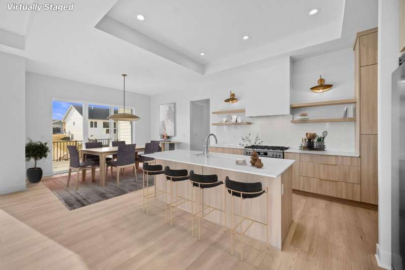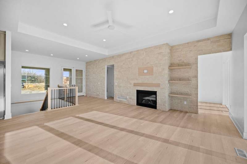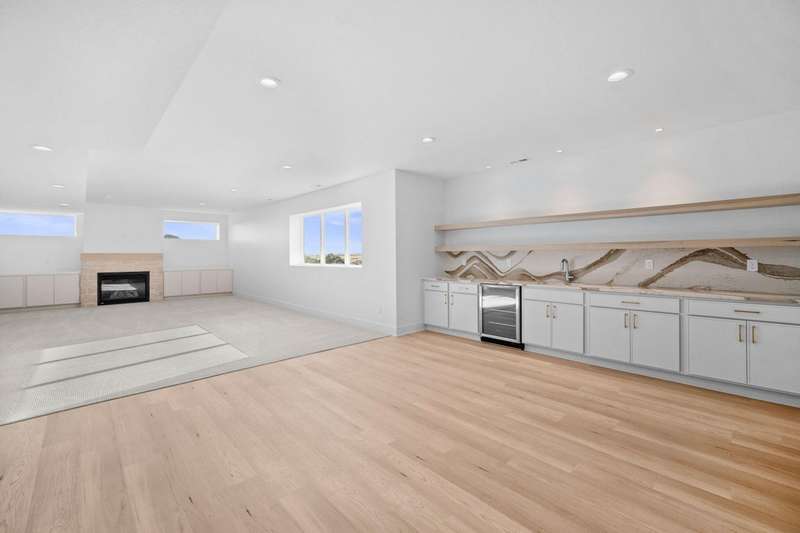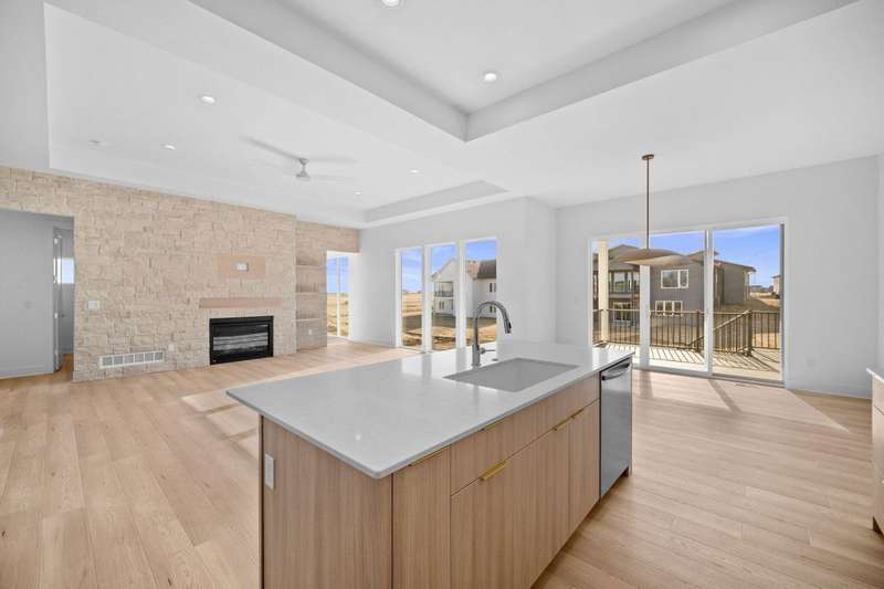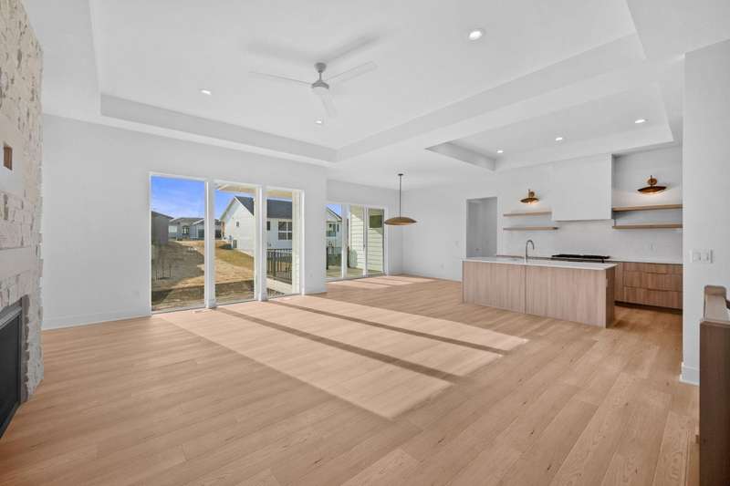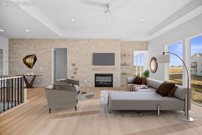 PRICE REDUCTION!!! Welcome to your new construction home in upscale Bentley Ridge in NW Urbandale, just a short walk from Radiant Point Elementary in the Waukee school district. This stunning, quality 2x6 constructed, 5-bdrm, 4-bath ranch home blends modern elegance, comfort and smart flow design. A stately stone entry connects to the full wall fireplace enhancing the inviting atmosphere of the great room. The design features expansive floor-level windows, creating bright, airy spaces with clean lines-combined with sleek white oak LVP flooring and a neutral palette for a sophisticated relaxed vibe. The kitchen delights with light quartz countertops, contemporary cabinetry, floating shelves, gas cooktop with direct vent exhaust, a double refrigerator/freezer, large walk-in pantry and an expansive island. The kitchen and baths have both gold and chrome fixtures for a variety of decor options. The primary suite is a serene retreat with a tray ceiling, elegant sconces, and a beautiful tile shower, dual vanity, separate make-up/styling counter, large closet with built-ins, and direct access to laundry room. Five handy pocket doors aid the smart floor plan, enhancing both flow and privacy. Completing the main floor is a 2nd bedroom, full bath, and a Den/Office or handy Playroom. The lower level is perfect for entertaining-featuring 9 ft ceilings throughout a huge family room with gas fireplace, an impressive wet bar, an over-sized guest half bath, and space for a pool table or play area. Bedrooms 3 and 4 include walk-in closets and share a full bath, while a versatile flex room can serve as a 5th bedroom, exercise, hobby, or school room. Now imagine having this home for your relaxing lifestyle. Whether you're a family with kids, a multi-generational group or empty-nesters this home will please all!