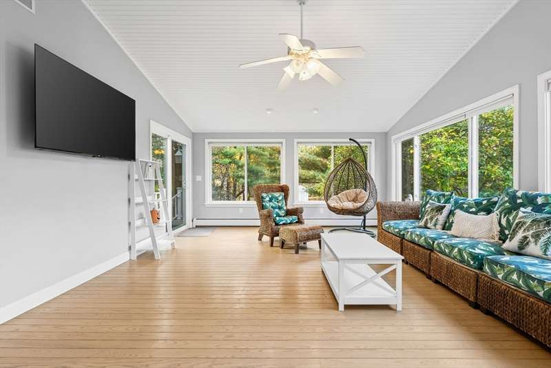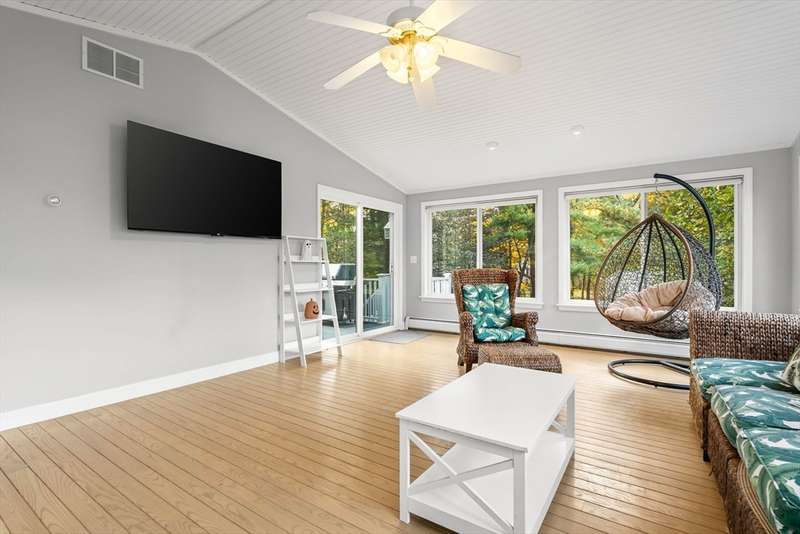 Welcome to West Bridgewater! This adorable 3 bedroom ranch home has tons of curb appeal and sits proud on a gorgeous country corner lot with mature landscaping. There is room for everyone in this expanded home. Step from your welcoming front porch into the oversized sunroom with vaulted ceilings that is fantastic for entertaining with access to the new composite deck. Move into the well-appointed kitchen with newly added island and featuring stone counters and newer appliances. Enjoy an open concept main floor layout as you move from kitchen into the living room anchored by a charming fireplace with built-ins and into the dining space beyond. The first floor offers 3 generous bedrooms and an updated bath. The basement features additional remodeled living space with extra storage and laundry space. Updates include central air and newer septic. This home has it all! Do not miss you chance for quiet comfortable living just minutes from shopping, schools, and highway access.