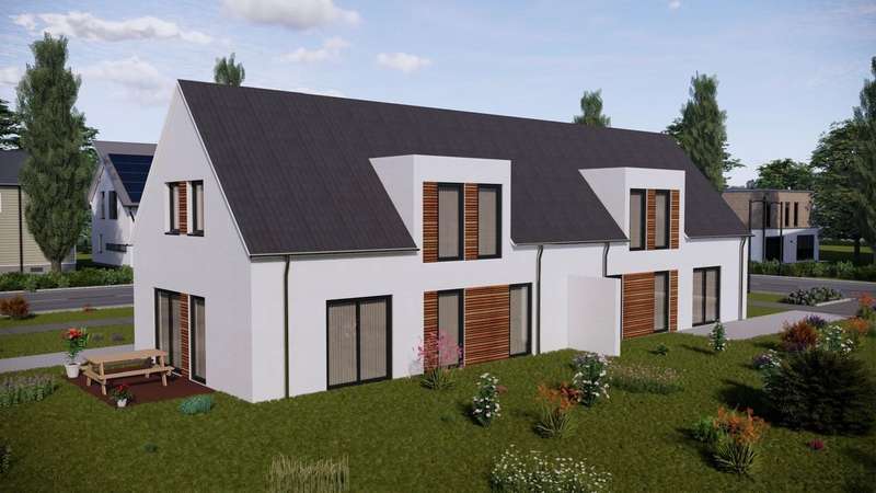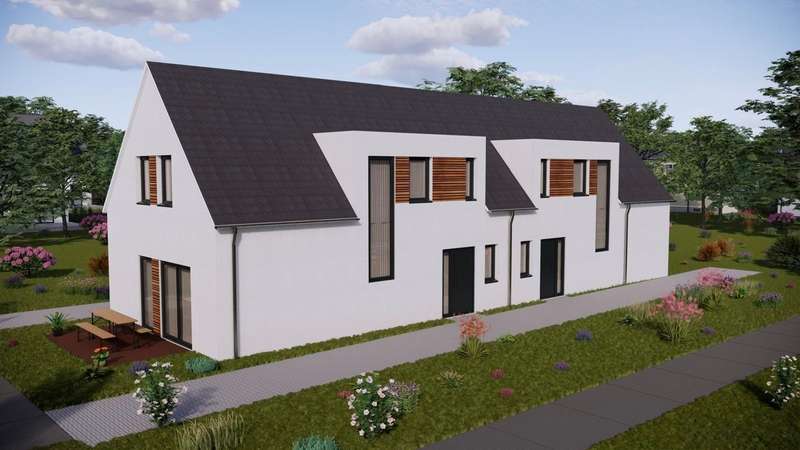 These stylish semi-detached houses are being built to the high-quality KfW 40 Plus standard in a fantastic peripheral location. Despite the quiet location, you can reach the popular Quakenbrück town center, shopping facilities and the great outdoors in just a few minutes. The large, open-plan living, dining and cooking area is particularly noteworthy on the approx. 115 m² of living space, from which you have direct access to the terrace and the comparatively large garden area with a fantastic view. There is also a guest bathroom with shower. On the top floor, you will find three bedrooms of roughly the same size, another bathroom with shower and a storage room. With its KfW 40 Plus rating, the property is energy-efficient and has the latest heating technology thanks to the air heat pump. Completion is expected in the course of 2025. Notes: An energy certificate was not yet available at the time the advertisement was created and will be submitted at the latest upon completion of the property. In addition, the plot has not yet been officially divided and surveyed. The stated plot area is therefore a provisional estimate. The survey will be carried out at the seller's expense as part of the sales process.