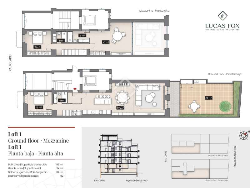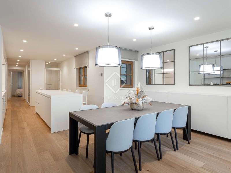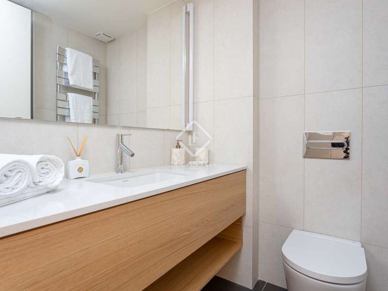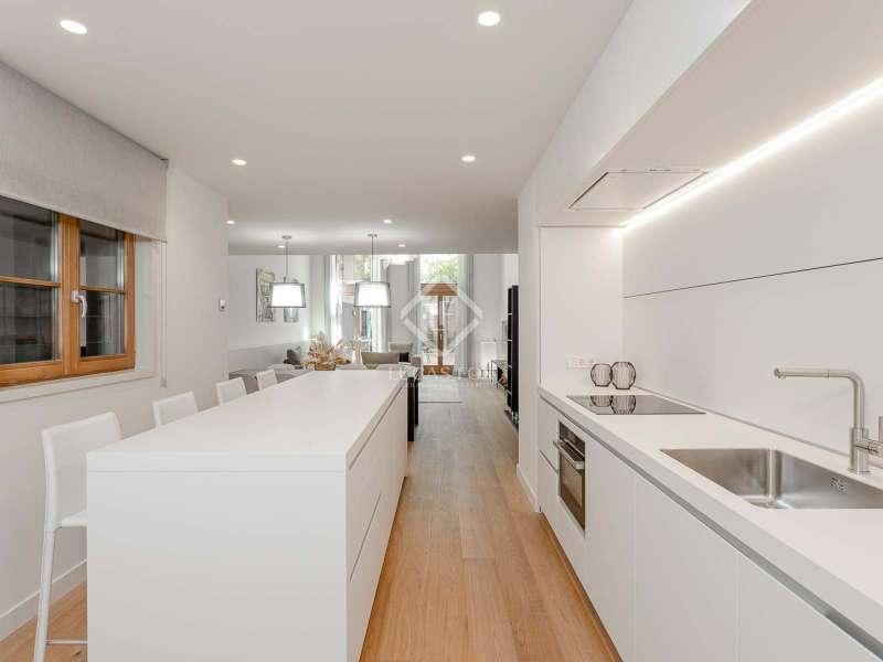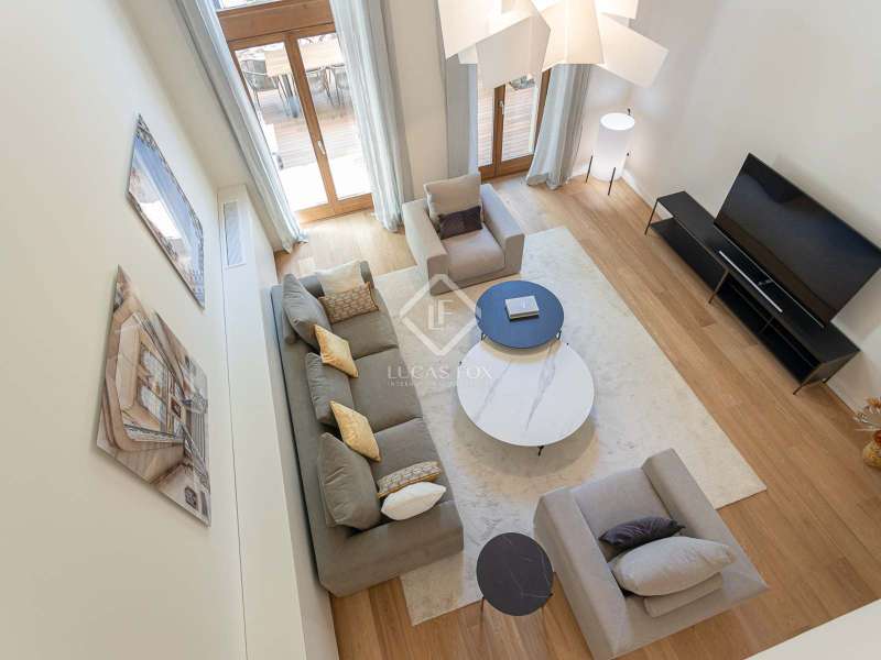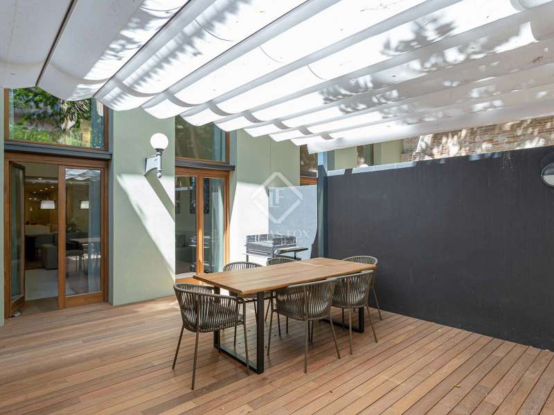 This stunning duplex is part a brand new development in central Barcelona. In a listed building with period features and façades, the development encapsulates Barcelona's history whilst promoting modern living. It is a central yet peaceful setting, overlooking Carrer de Pau Claris and the tree-lined pedestrian walkway Pasaje Mendez Vigo. Furthermore, with the exclusive Passeig de Gràcia just one block away, this really is a privileged postcode. This ground-floor duplex apartment offer 3 bedrooms and living spaces, with high ceilings and Catalan beams, distributed across 2 floors. A private patio garden, an oasis in the heart of the city and a rare find in such a central location, is accessed directly from the living area. The property boasts the highest quality materials and finishes including Bulthaup and Neff Kitchen and Roca, Duravit and Hansgrohe bathrooms. Latest technology security features ensure total peace of mind and the apartment is internet ready. The building itself is worth admiring, the grand foyer features modernist tiled flooring and frescos, a lift leads to each floor. Contact us for further information about this property.