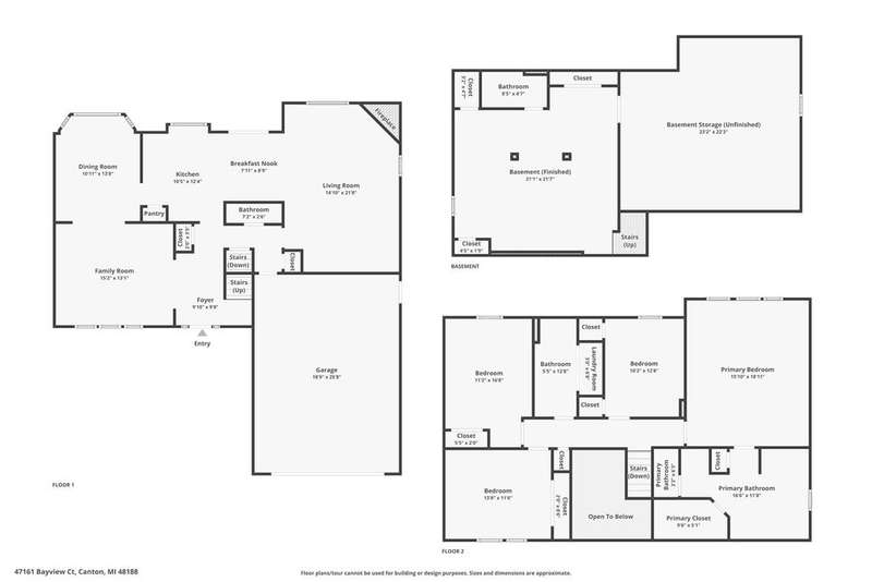 $20K PRICE CHANGE! Sellers hate to leave this happy and incredibly livable 4 Bd FOUR Bath home on a gorgeous half acre lot on a quiet cul de sac in Canton due to a job change. New furnace, newer roof, beautiful new floors on the first floor, and much more. All the big updates done for you. Now priced below market value to sell quickly- schedule your showing quickly!Two extra large living areas on the main level, a delightfully finished egress lower level with full bath, plus an enormous charming brick patio surrounded by trees and a raised garden bed make for easy living and delightful entertaining with room for everyone. All this with charter schools of choice in beloved Meadow Villages of Canton. This charming home is where warmth meets joy, with space for everyone to make memories that will last a lifetime. Sunlight pours through open spaces, while mature trees dot the property and offer shade and privacy around the extensive brick patio? an outdoor haven just right for dining, entertaining, or simply savoring the season. A play structure adds to the fun for the kids! Stepping inside from the charming porch, you'll find that the home flows with that wonderful, livable layout. Two large living areas on the main floor provide space to gather, work, or unwind. The bright kitchen is equipped with a new stainless-steel double oven and moveable island/eating counter, and opens seamlessly to the patio, making both weeknight dinners and celebrations a joy. Upstairs, all four bedrooms are thoughtfully arranged, including the serene ensuite primary retreat at the end of the hall for privacy. The finished basement extends your living space, offering room for hobbies, media, fitness, or play, and the generous garage offers additional storage or work space.This home has clearly been lovingly maintained and updated: new flooring throughout the first floor and primary bath, a newer roof, ('17) new furnace (high efficiency Lennox, '23), newer water heater, and a newer triple-pane patio door to frame those backyard views. The atmosphere throughout is bright, airy, stylish, and happy, and the updates make 47161 Bayview Court truly move-in ready.Beyond the home itself, the location is ideal. Just minutes away, you'll find shopping, the top notch local library, and Canton's highly regarded Summit on the Park recreation center, with its beautiful pools, fitness facilities, and a lazy river, plus excellent summer job opportunities for teens. For commuters, access is effortless with both I-94 and I-96 nearby, connecting you quickly to Ann Arbor, Plymouth, Detroit, or Toledo. Education options abound as well, with charter school opportunities in addition to highly regarded Canton public schools. Easy access to universities, hospitals, metroparks like Lower Huron, Willow and Oakwood. Try Palermo's for the best pizza in town and Sheikh for delicious authentic Mediterranean cuisine!A home that blends timeless Colonial grace with contemporary comfort, in a community rich with amenities; this is that rare opportunity to have it all. Welcome home!