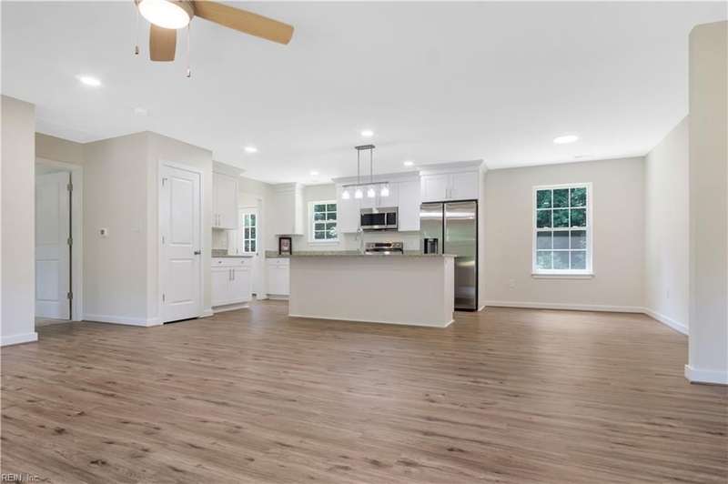 Welcome to this beautifully crafted new construction ranch home. It offers 3 spacious bedrooms and 2 luxurious full bathrooms. Step inside to an open concept layout adorned with crown molding, recessed lighting , and rich natural light. The gourmet kitchen features granite countertops, stainless steel appliances, and stunning custom cabinets. Retreat to the spa inspired primary suite complete with a soaker tub and walk in shower. Enjoy outdoor living on the inviting front porch or private back deck. An oversized and extended driveway, garage, and included washer and dryer complete the package. This home blends timeless elegance with everyday functionality- don't miss the opportunity to own it.