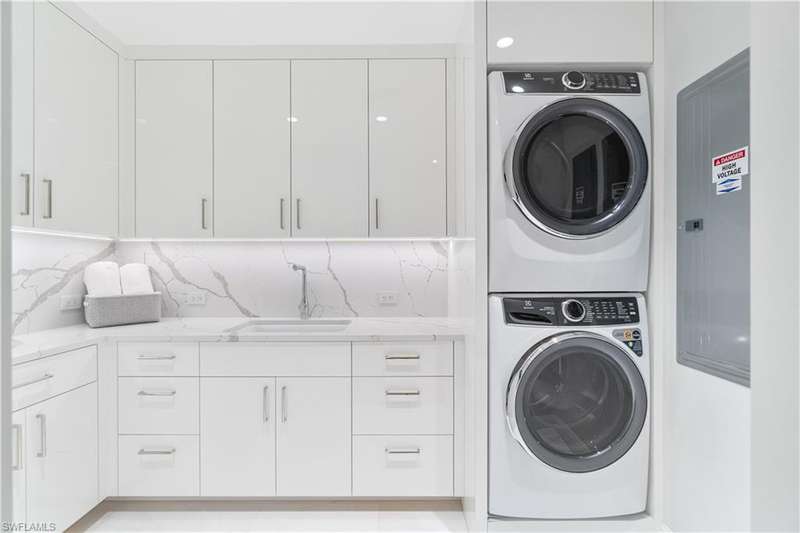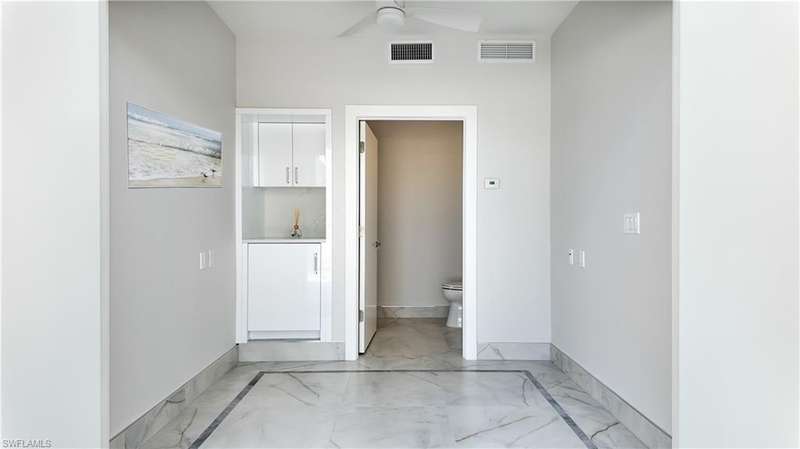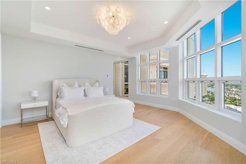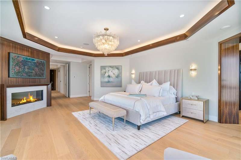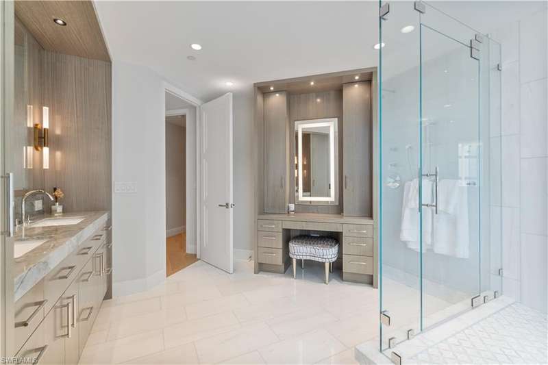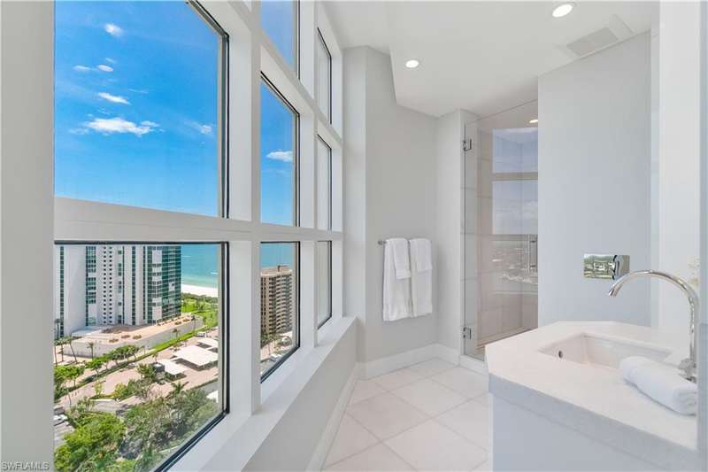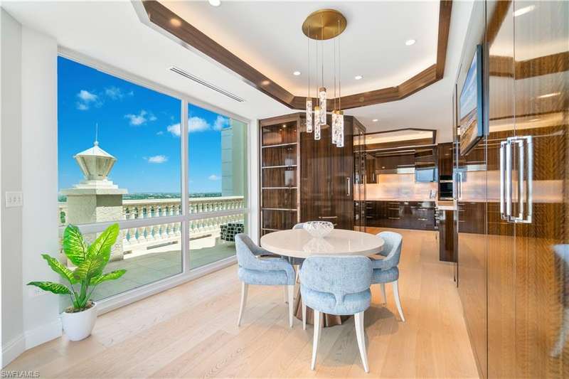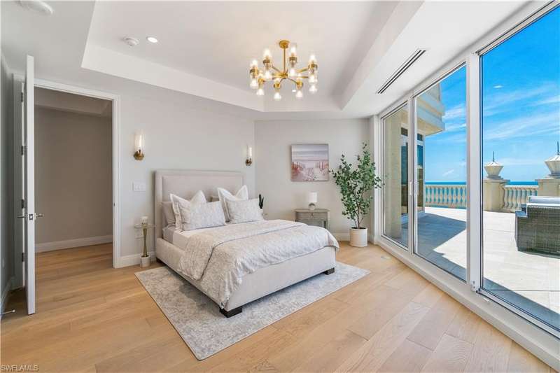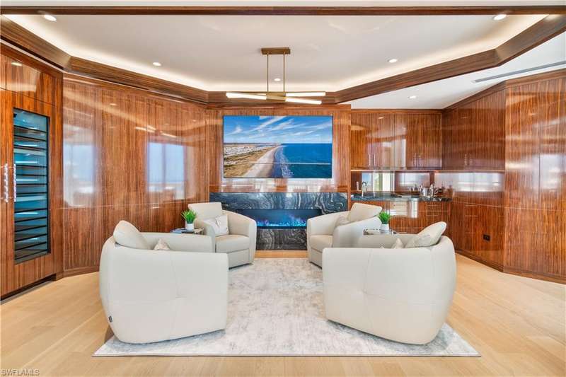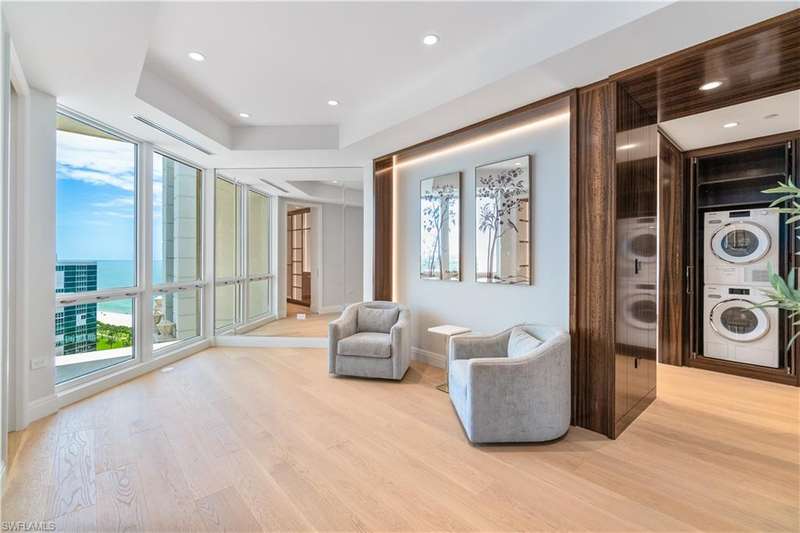 An extraordinary offering in the heart of Park Shore, Penthouse 14 at The Brittany presents a rare opportunity to own a one-of-a-kind residence with 4 bedrooms + den, 6,435 square feet of interior living space, and 1,950 square feet of wraparound balcony showcasing panoramic views of the Gulf, Venetian Bay, and Naples skyline. Thoughtfully curated by UpVail and Architectural Wood Expressions with a level of craftsmanship seldom seen, the home features hand-selected European select-grade White Oak flooring, dry-laid quartzite and marble surfaces, grain-matched custom European millwork, and Level 5 finishes throughout. Built with 5/8-inch drywall and mineral wool insulation for enhanced structural integrity, sound attenuation, and climate control, the residence also offers invisible audio speakers, a Control4 smart system, ultra-clear shower enclosures, Samuel Heath plumbing fixtures, Emtek hardware, and a full suite of Miele appliances. Distinctive highlights include a water vapor firep