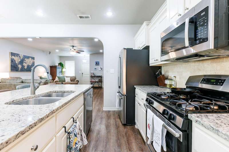 Welcome to this bright and beautiful 3-bedroom, 2-bathroom home located in the sought-after North Pointe subdivision of Lubbock. This newly listed residence offers 1,614 square feet of well-thought-out living space designed for comfort, function, and style. From first glance, the curb appeal captures attention with a stained wood fence, inviting covered front porch, and a charming iron gate topped with a pergola-perfect for greeting guests or enjoying your morning coffee. Thoughtful landscaping enhances the welcoming feel, setting the tone for what you'll find inside. The open-concept layout creates a seamless flow from the living area into the dining space and kitchen, allowing for easy entertaining or simply spreading out at home. Large windows fill the interior with natural light, contributing to the cheerful and airy ambiance throughout. The living area offers enough space for relaxing or gathering, and the neutral tones make it a canvas for your personal style. In the kitchen, both function and form come together. A gas range makes cooking a breeze, while the walk-in pantry offers convenient storage for all your culinary essentials. From meal prep to midnight snacks, this kitchen is ready for your daily life. The primary bedroom is a peaceful retreat positioned away from the other two bedrooms for added privacy. The adjoining en suite bathroom includes a sleek walk-in shower and ample vanity space, creating a private oasis for winding down at the end of the day. Two additional bedrooms offer flexibility-you can use them for guests, as a home office, or for hobbies depending on your needs. A full second bathroom ensures convenience and comfort for every member of the household. Heading outdoors, the east-facing back porch is covered to keep things cool during sunny summer mornings. Whether you're hosting gatherings or taking in a quiet evening, this space has you covered-literally. The backyard offers room to roam while the stained fence adds both security and privacy. What's outside your front door is equally impressive. Just a short drive away, you'll find easy access to Texas Tech University and two top medical facilities-University Medical Center and Covenant Medical Center. Grocery runs are simple with Food King nearby, and when it's time to unwind, Richard Lopez Park offers green space and play areas for all ages. For those with interests in local education initiatives, the Lubbock ISD Agristem complex is also easily accessible. Whether you're commuting to work, class, or a game day at the Jones Stadium, this centralized location offers excellent connectivity while maintaining a peaceful neighborhood charm. This home combines everyday functionality with thoughtful touches of charm, making it a great fit for a range of lifestyles. If you're looking for a comfortable space in a convenient area, with just the right amount of style to make it your own-this could be the one. Come see what life could look like here!