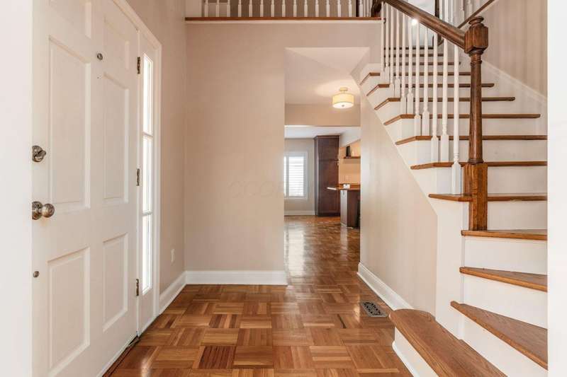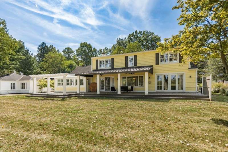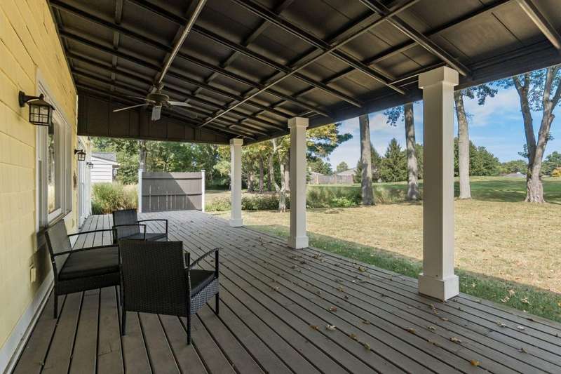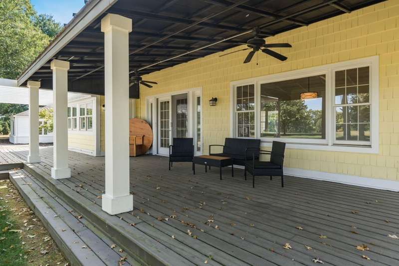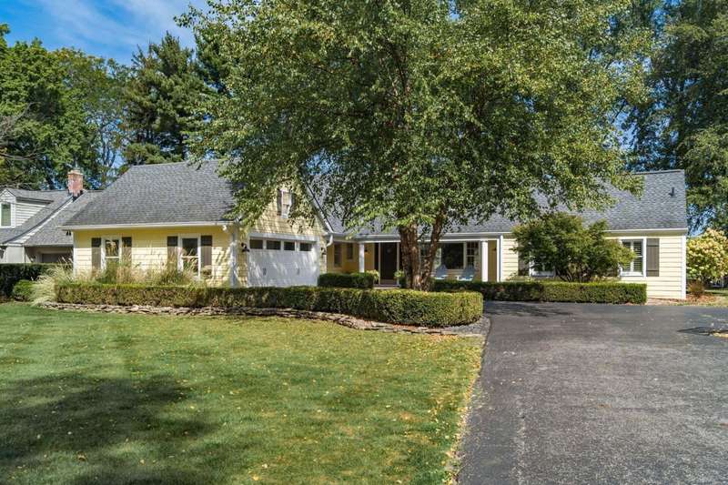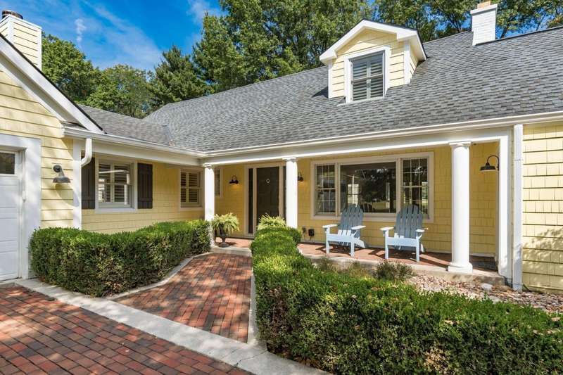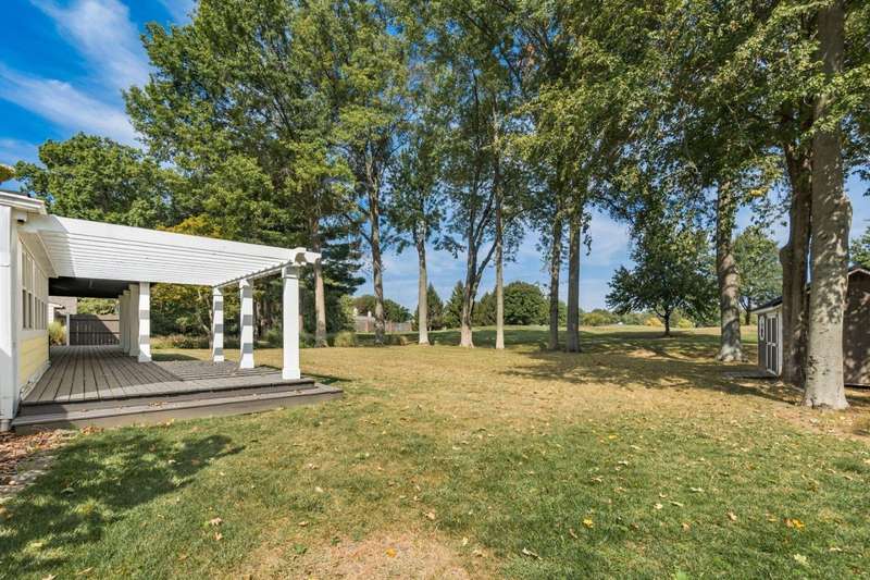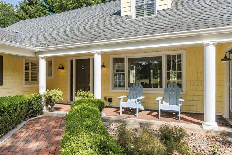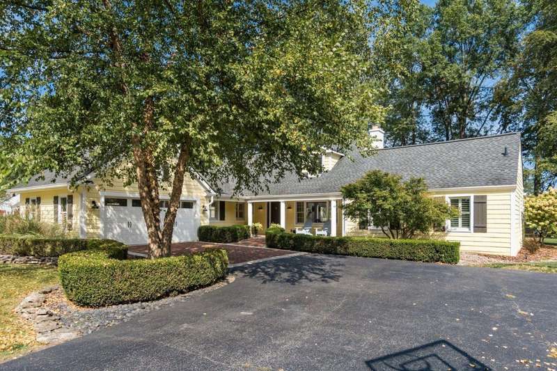 Charming Cedar-Sided Cape Cod with Golf Course Views! Nestled on a beautiful 0.46-acre lot bordering the prestigious Columbus Country Club, this classic Cape Cod offers timeless charm, thoughtful updates, and views of the 18th hole and driving range. Step inside through the welcoming entry foyer and discover the cozy living room featuring a fireplace and wood floors, found throughout much of the home. The updated eat-in kitchen opens seamlessly to the family room, creating an ideal space for everyday living and gatherings. The spacious, light-filled dining room perfect for entertaining and a dedicated home office provides flexibility for remote work or study. The main-level primary suite offers convenience and privacy, while the second floor features two additional bedrooms and a full bath. Enjoy outdoor living on the expansive covered deck overlooking the peaceful golf course setting. Additional highlights include a two-car attached garage, generous closet space and storage throughout, and a storage shed for extra organization. A rare opportunity to own a private retreat with unbeatable views and classic character in a prime location!