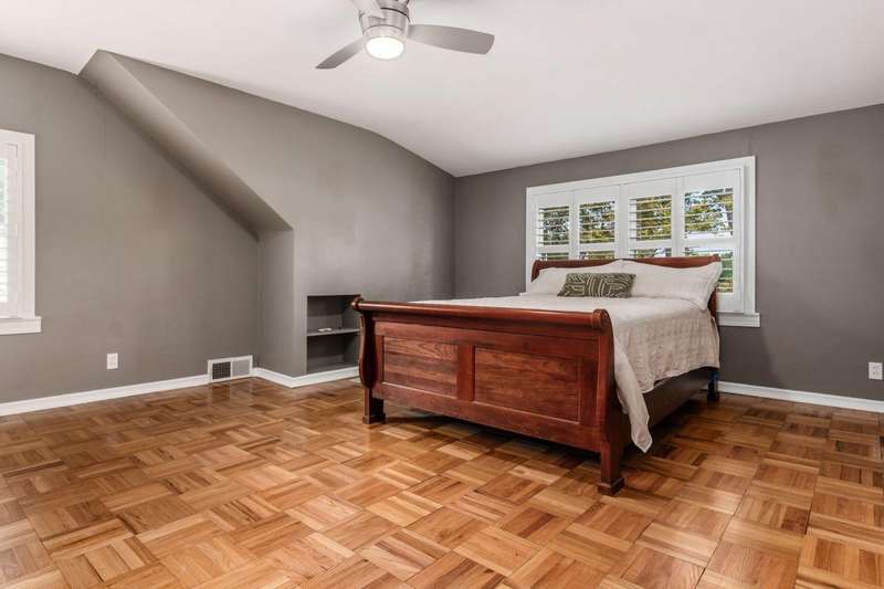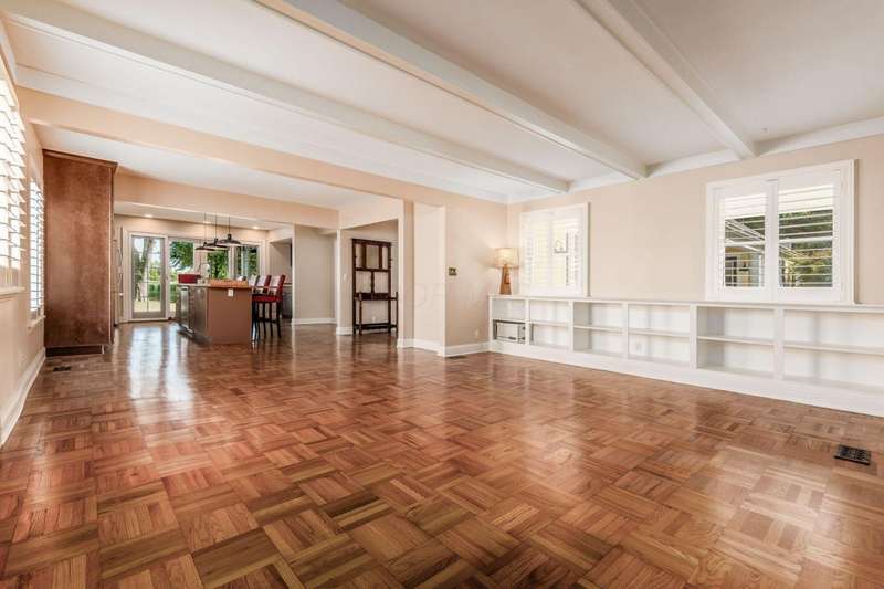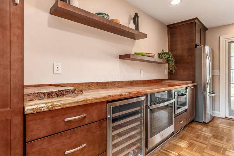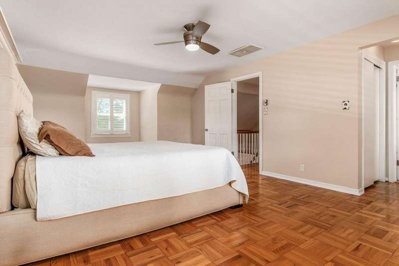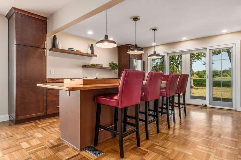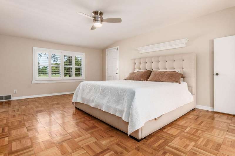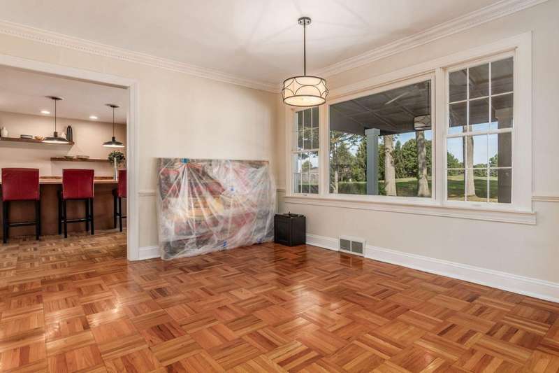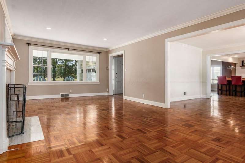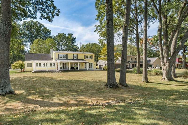 Charming Cedar-Sided Cape Cod with Golf Course Views! Nestled on a beautiful 0.46-acre lot bordering the prestigious Columbus Country Club, this classic Cape Cod offers timeless charm, thoughtful updates, and views of the 18th hole and driving range. Step inside through the welcoming entry foyer and discover the cozy living room featuring a fireplace and wood floors, found throughout much of the home. The updated eat-in kitchen opens seamlessly to the family room, creating an ideal space for everyday living and gatherings. The spacious, light-filled dining room perfect for entertaining and a dedicated home office provides flexibility for remote work or study. The main-level primary suite offers convenience and privacy, while the second floor features two additional bedrooms and a full bath. Enjoy outdoor living on the expansive covered deck overlooking the peaceful golf course setting. Additional highlights include a two-car attached garage, generous closet space and storage throughout, and a storage shed for extra organization. A rare opportunity to own a private retreat with unbeatable views and classic character in a prime location!
