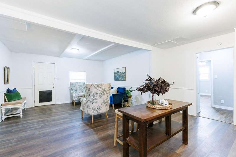 This 3/1.5/1 house with two living spaces and nearly 1500 sq ft is waiting to be a home. Original hardwood floors throughout front living room and in each bedroom keep the original charm of the home while the updated kitchen and bathrooms add the perfect touch. There is tile in both bathrooms and fresh paint throughout. The closets are so much larger than closets for this age of home. Enjoy the New Vinyl Plank and sub flooring in Kitchen and Flex space. The kitchen cabinets are beautiful~you will love the color. Roof 3 years old. There is a large backyard with room for your dog.