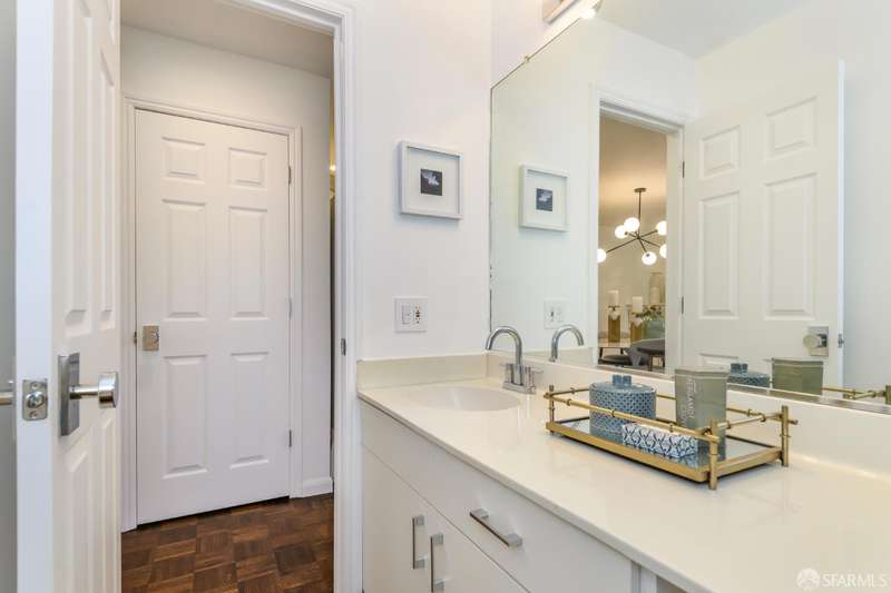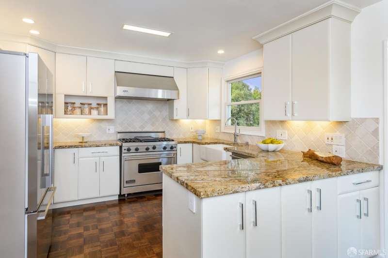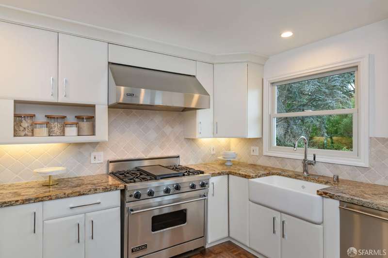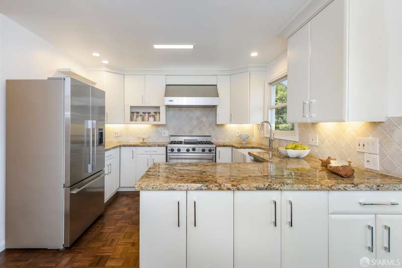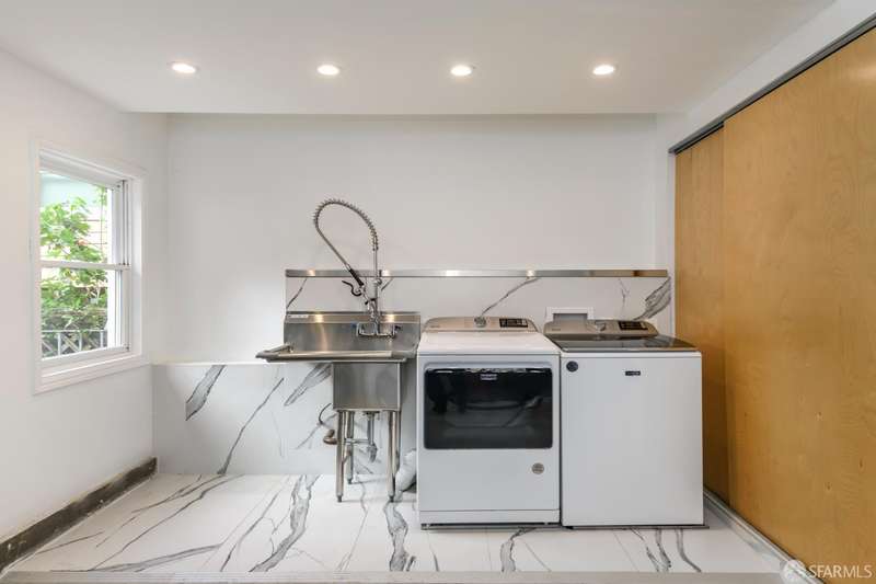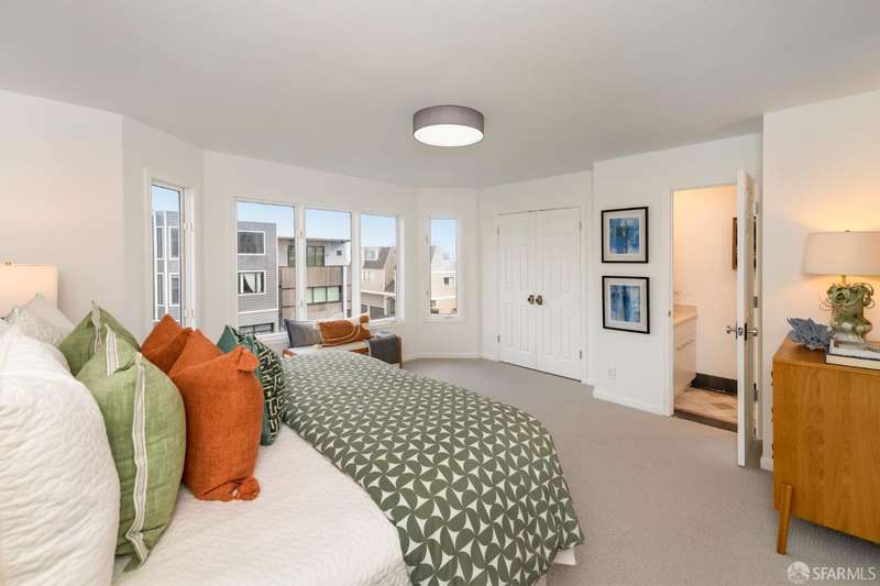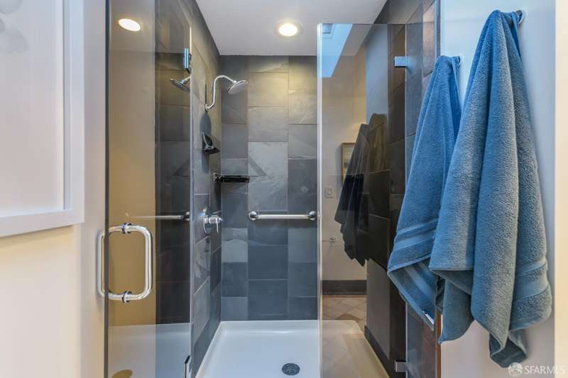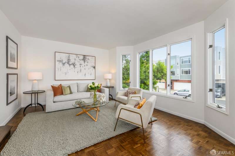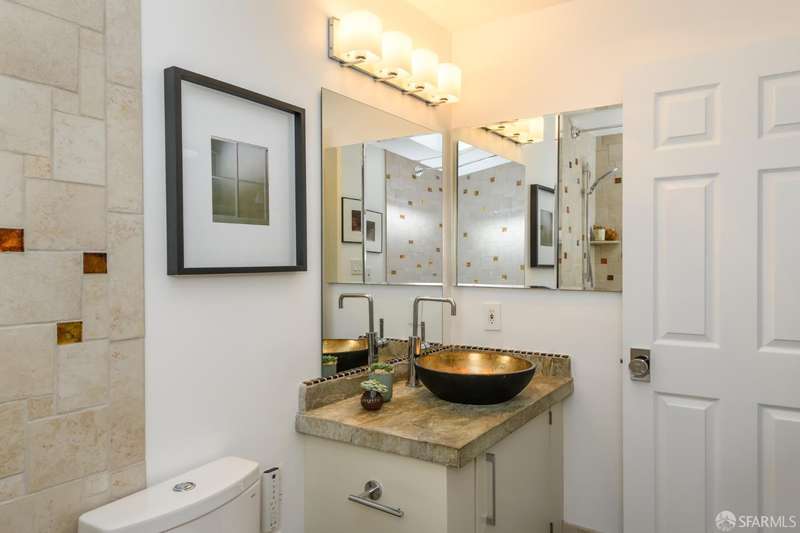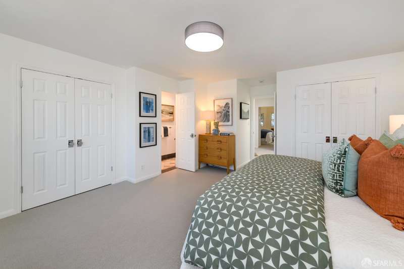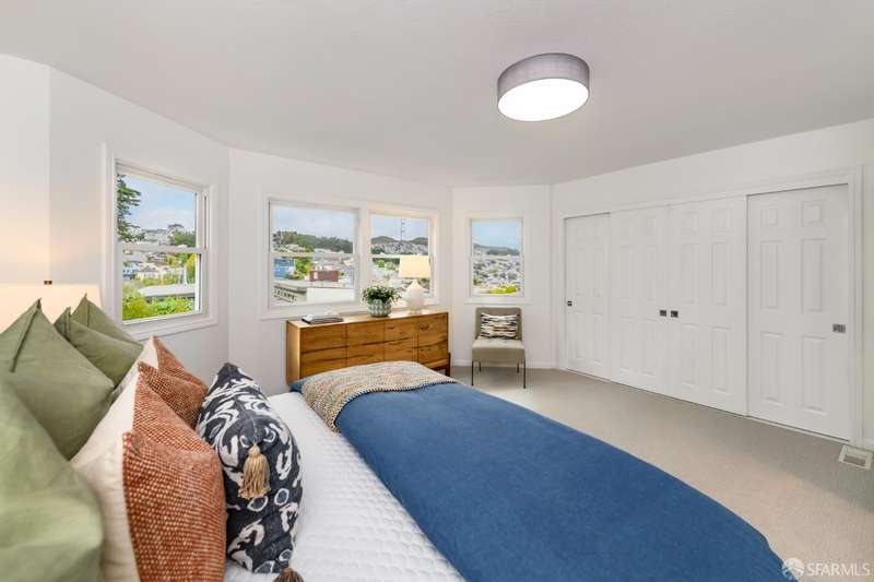 One might think of Castro Street as hilly, noisy, or bustling. Yet one special block in Noe Valley is a well-kept secret: quiet, accessible, level, and uncrowded, with views of the neighborhood and the city, plus easy access to shops, Diamond Heights, parks and schools. This elegant Noe Valley townhouse lives like a single-family home, offering space, privacy, and comfort. Upstairs, two spacious ensuite bedrooms filled with natural light serve as peaceful retreats, separated by a bright loft with skylights ideal as a reading nook, office, or creative space. Enjoy panoramic downtown views to the front, rolling hills and city lights to the rear. The main level features a sunken living room with a gas fireplace, a formal dining room with a bar closet, and a cheerful eat-in kitchen opening to stairs leading to an updated garden with teak decking and stone accents creating a seamless indoor-outdoor connection. The entry level offers a generous foyer, abundant storage, and a two-car tandem garage with laundry and garden access, plus an additional parking space in the driveway. Parking for three cars is a rare convenience that truly sets this home apart in the city. Tucked on a peaceful cul-de-sac, this beautifully updated home is steps from vibrant 24th Street.