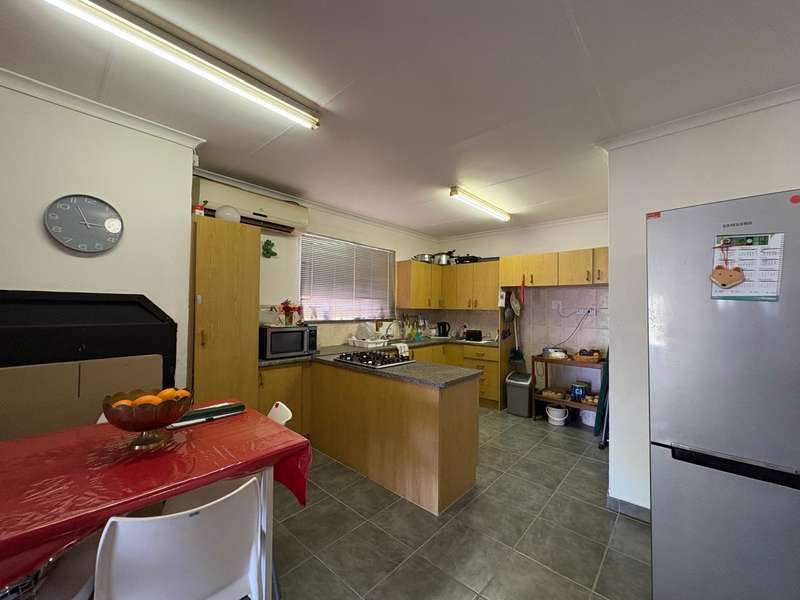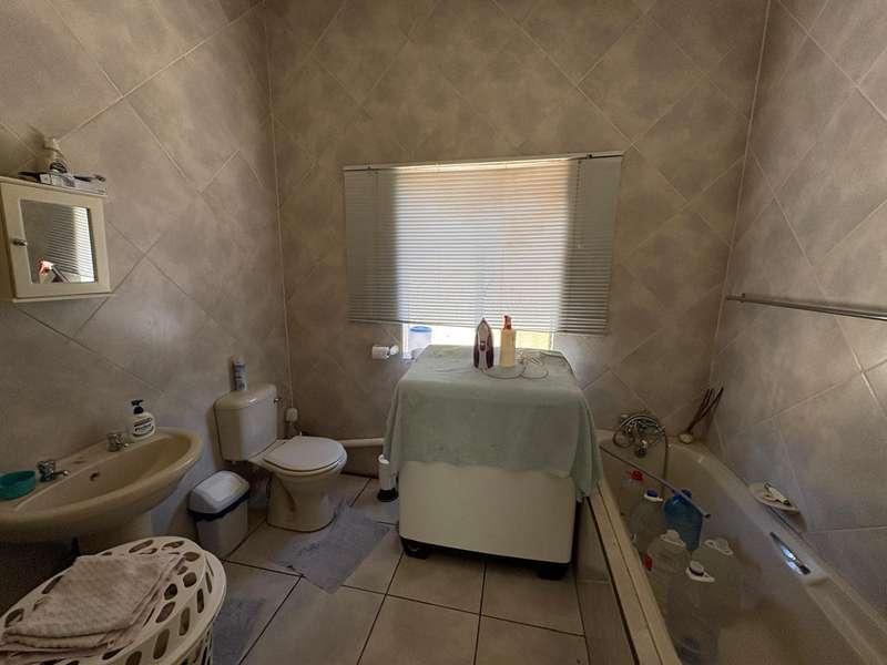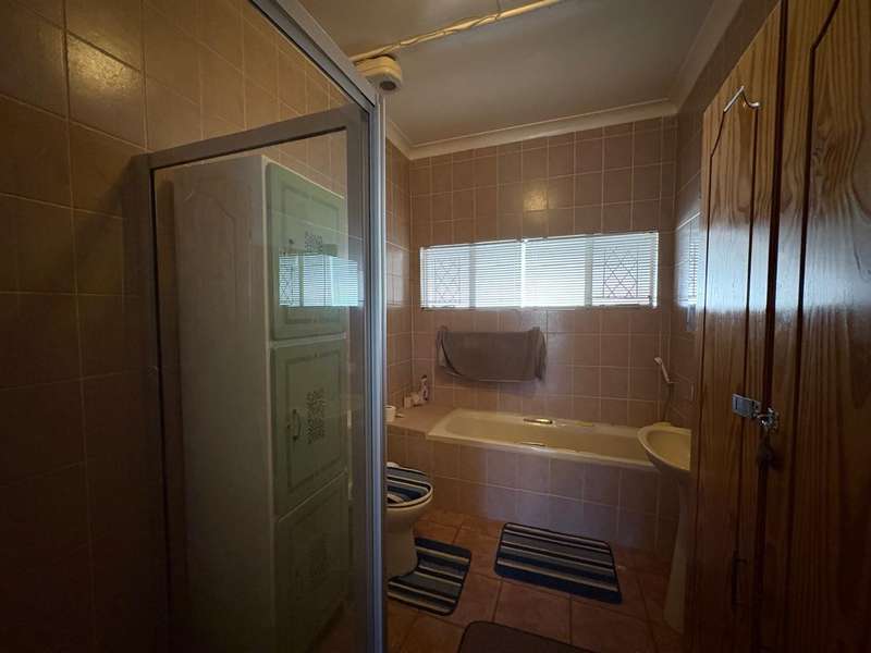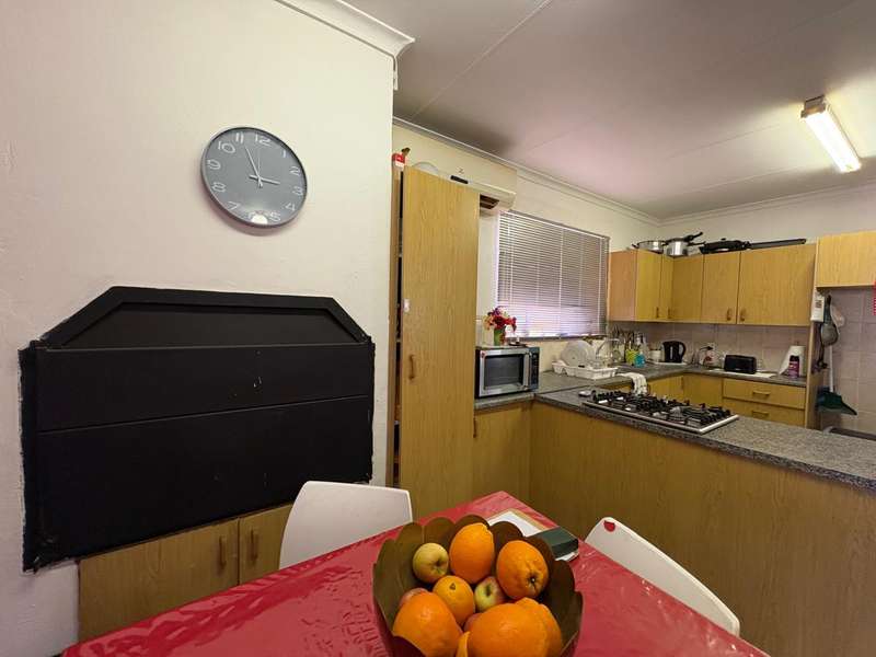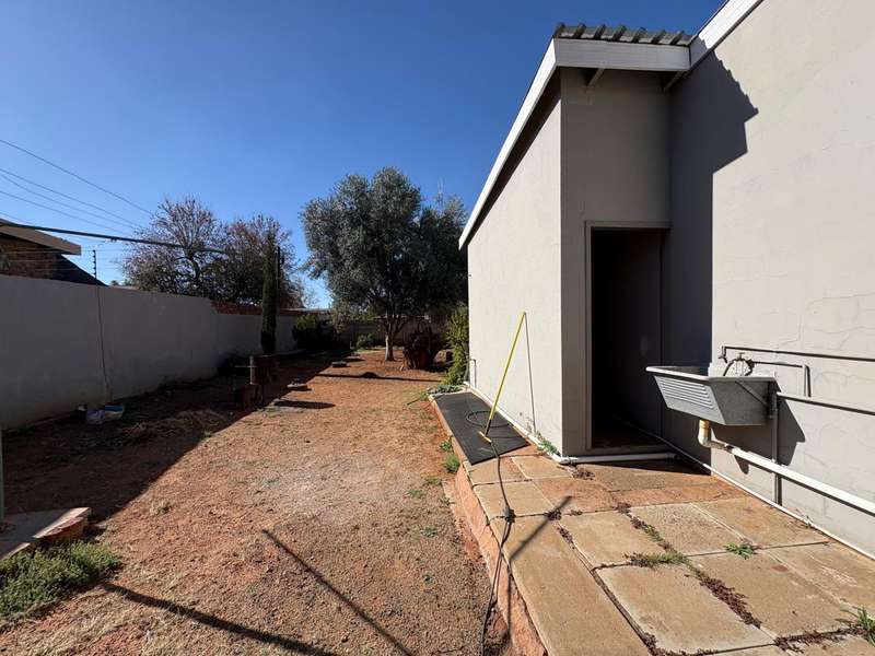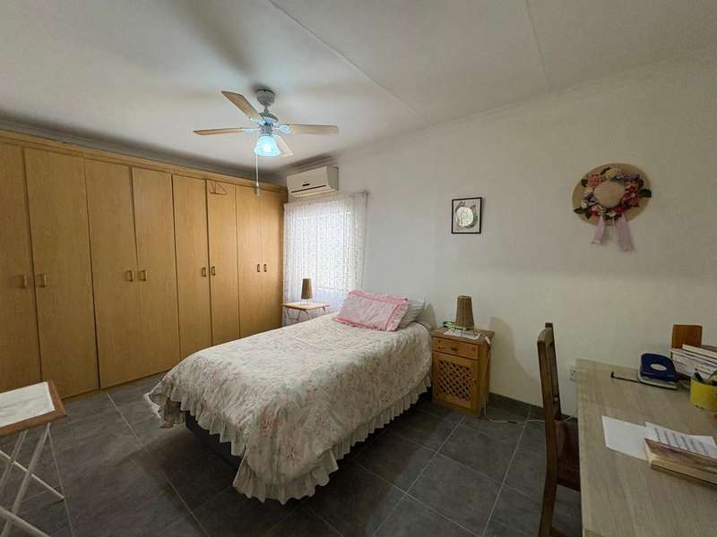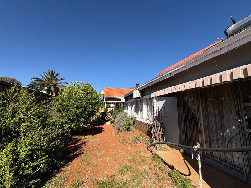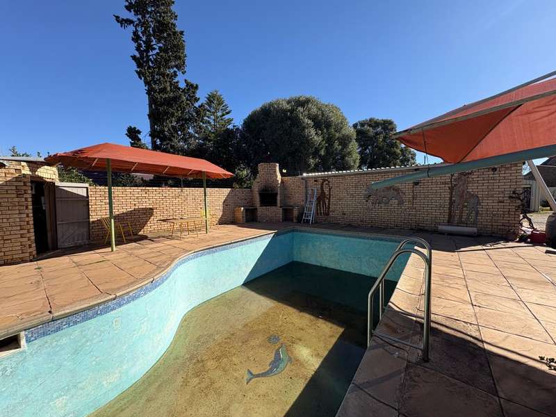 CHARMING HOUSE AND PERFECTLY LOCATED Close to primary and high schools and shopping centre BONUS ?Çó 1 Bedroom flat ?Çó Borehole ?Çó 3 x Jo-Jo tanks ?Çó 2 x Solar and gas geysers. This Property offers ?Çó 5 Bedrooms all with build in cupboards (3 rooms with separate entrances - 2 x secured with trellis doors) ?Çó 2 Bathrooms ?Çó Kitchen offers a breakfast nook, ample built-in cupboards, an eye-level oven with hob, extractor fan, and a convenient scullery ?Çó Study ?Çó Dining room ?Çó The lounge features a cozy indoor braai area and trellis door security Large Living room ?Çó The garden ?Çó Swimming pool (currently empty ?Çó Tool shed, ?Çó Carport for four vehicles and two additional open bays. The Property is fenced and secured with Burglar bars Phone us to view this Property