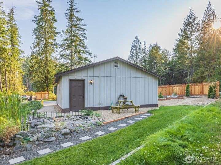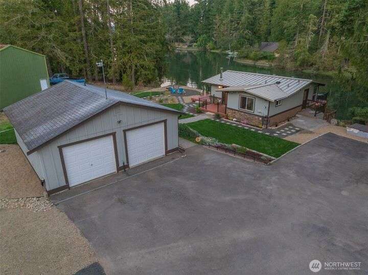 Great price for Waterfront Gem! 180' ft low bank on Case Inlet w/additional 1 acre buildable lot across the street; total of 2.2 acres to enjoy water & outdoor fun! Lovely, 2 BR, 1 full bath home w/ fresh color inside & out; Renovation in 2013 w/new electrical, windows, flooring, insulation & radiant floors. Spacious deck & landscaped yard w/ firepits & night lighting. A circular driveway w/hookups for 2 RV's. New pilings, 20' foot ramp & 12X8 platform for your water toys. And there's MORE! Additional acre is ready to build a home or shop, septic installed and approval for expansion. A trail to a private gazebo & outdoor firepit in the forest. Great location to shopping, golf, HWY & towns. Perfect full-time home, VRBO or vacation home!