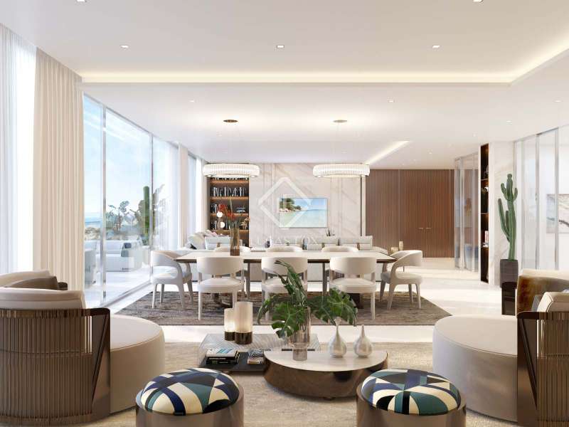 Located at the heart of Marbella's coveted Golden Mile area, right next to Puerto Banus, we find these comfortable, functional homes in a very modern development spread through 5 buildings on a premium plot of 8,000 m² including a 6,000 m² communal area with landscaped gardens, a pool and sun deck. Homeowners in this development may also enjoy a fully equipped wellness spa, a gym, heated indoor pool, a clubhouse and a beautiful area for celebrations. In line with other leading developments around the world, this project shall provide a complete concierge service along with a wide range of exclusive services offered by professionals, such as personal trainers, personal shoppers, beauty stylists, child care, cleaning, healthcare, legal advice and lessons in anything the resident wishes. Each of the 5 blocks contains 4 separate apartments with 4 bedrooms and a wonderful open concept living and dining area with a modern, open plan kitchen. Interiors have been designed with a focus on light and space thanks to large windows and high ceilings. The use of partitions allows the owner to enjoy a flexible layout. Cutting-edge technology and carefully selected materials have been employed to create these eco-friendly homes. This beautiful house with four bedrooms, four bathrooms and one toilet, also has two private parking spots.