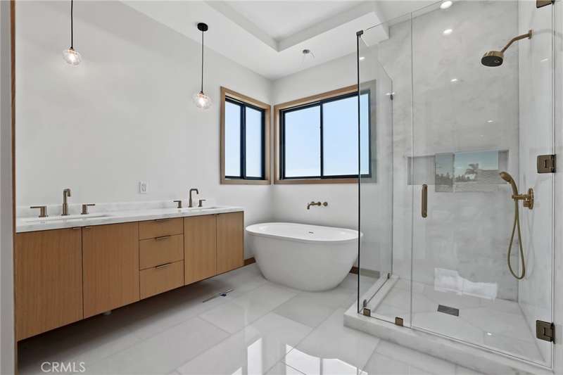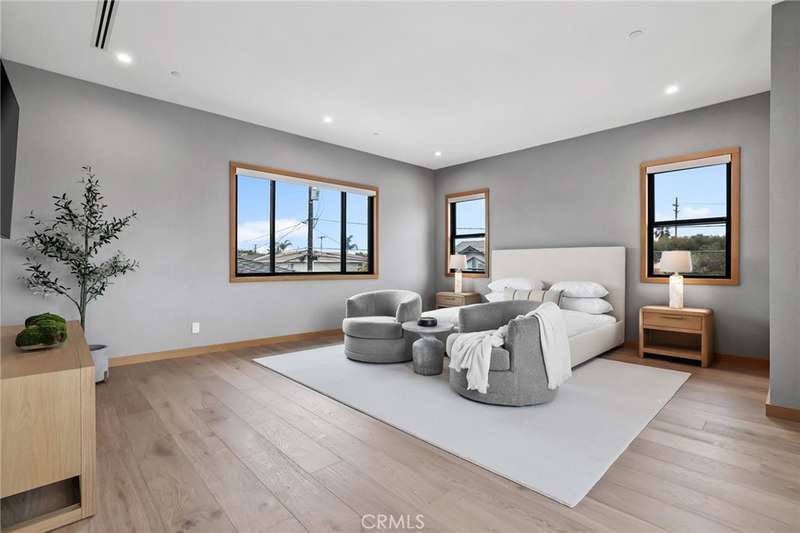 This brand new home offers a modern, luxurious living experience in the heart of Lake Park, combining sophisticated design with functional elegance. The home features a dramatic two-story entry, complemented by Restoration Hardware chandeliers and sconces, and a massive custom 5' wide pivot front door. Light-filled spaces are enhanced by large wood-clad windows, while a full-sized elevator and modern amenities like new plumbing, electric wiring, and dual air conditioning systems provide convenience. The interior boasts 12' volume ceilings with geometric architectural features, custom closets with built-in lighting, and designer fixtures throughout, including Porcelanosa tile and Serena & Lily wallpaper. The expansive kitchen features a massive Taj Mahal island, custom oak cabinets, and top-of-the-line appliances, while the downstairs living areas offer a spacious living room, formal dining room, and en-suite bedroom with access to the patio. Upstairs, a large family/game room and secondary bedrooms with custom closets and designer finishes create a welcoming environment, leading to a luxurious primary bedroom with a spacious walk-in closet and stunning bathroom features. Outside, the home is equipped with solar panels, a three-car garage with epoxy flooring and room for a car lift, and additional parking for an RV or boat. The property's sleek, modern design is further accentuated by natural stone accents, a standing-seam metal roof, and a Santa Barbara plaster finish.