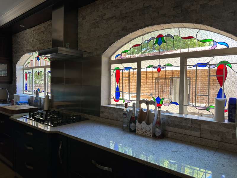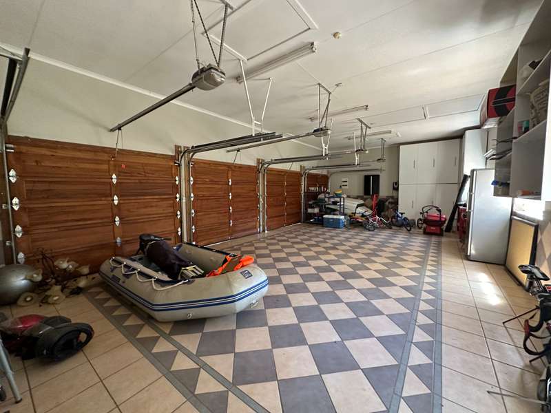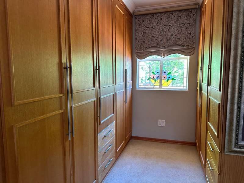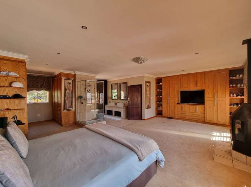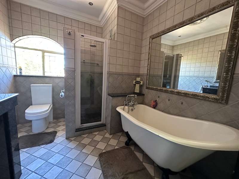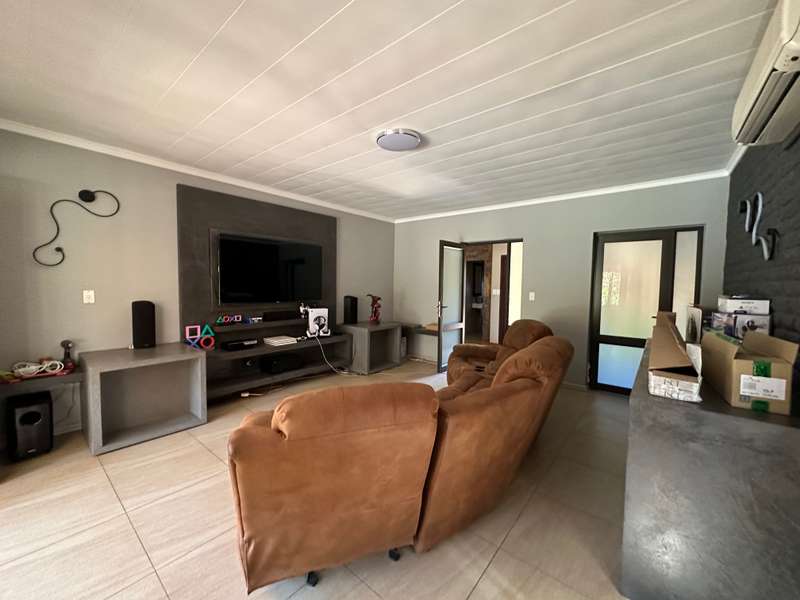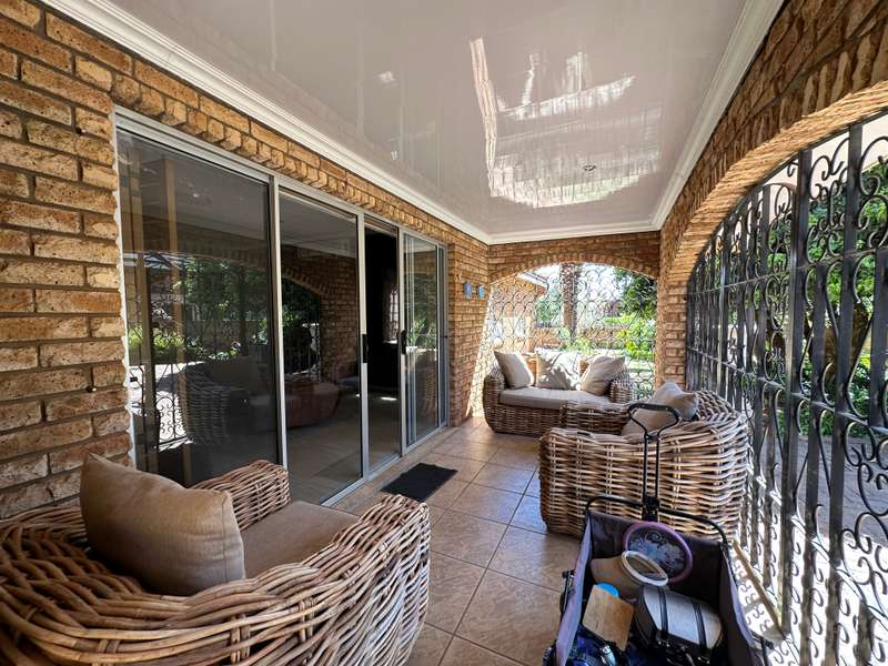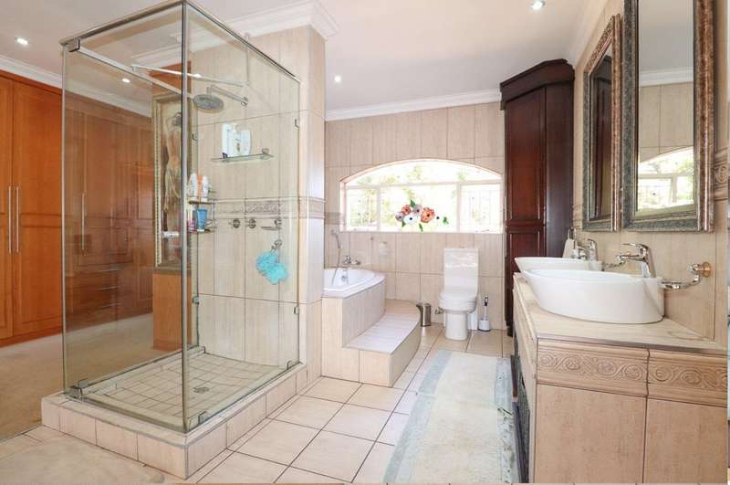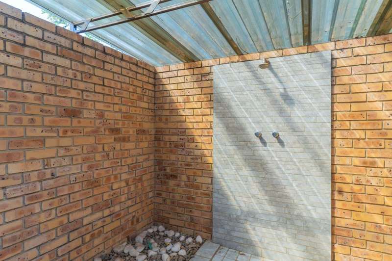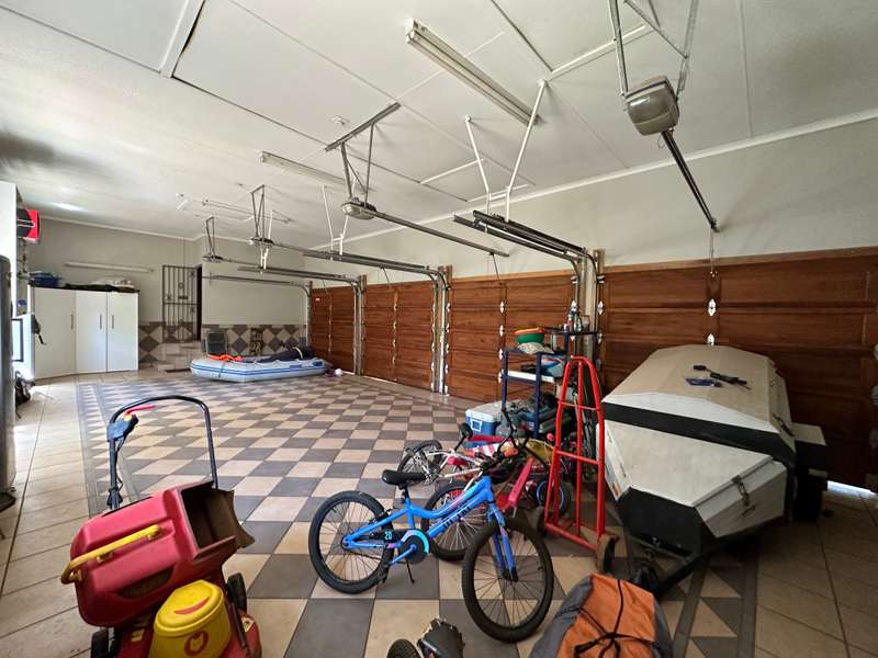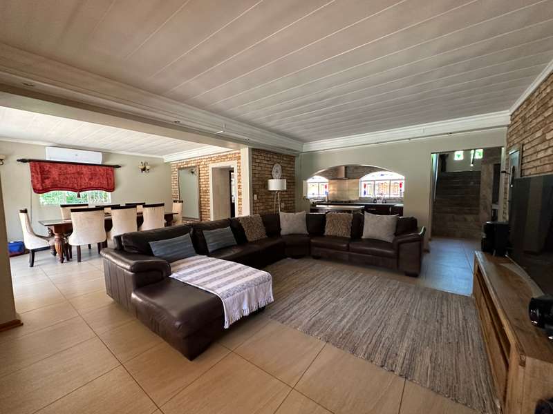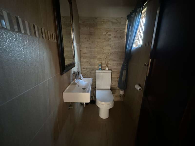 Anything and everything in the right location! Stunning property in one of the most sought-after streets in Klerksdorp. Home itself is a double story, with all living spaces at the ground floor, and the bedrooms and two full bathrooms on the first floor. From the entryway, the home leads you into multiple living areas, to the left is a small study area (with built in desk and cabinetry), right across is the family/entertainment room with sliding doors opening the room onto a well enclosed patio overlooking the pool. To the right of the entryway, the home opens into the formal lounge and kitchen. Kitchen is an absolute dream, dark wooden cabinets with grey granite tops and stained-glass windows. Dining room is on the far side and open floor plan with the main living space. Both these areas open onto the well enclosed patio. Granite staircase leads you up to the four bedrooms, 3 comfortable children’s bedrooms (built in cupboards and air-conditioners) and a main bedroom the size of most one-bedroom flats. Spectacular with the open, centrally placed shower as the definite showpiece. Fireplace and air-conditioner is perfect to set any mood. Entertainment space alongside the swimming pool is the ideal setting for any event. Covered patio at the front with a raised braai and bar area at the back of it. On the side is the indoor entertainment space (could easily be used as a flat), two air conditioners and fireplace and a very spacious bathroom with open air shower. Alongside and attached to the home is four garages, motorized doors, tiled flooring, and ample storage. A doorway via the study area provides easy access. On the other side, across from a courtyard by the kitchen and freestanding from the main home is the laundry, storeroom, and staff quarters. Lockable steel carport is at the side. In the back garden is also a wendy house for additional storage. As added bonus; • 25KVa Generator • Borehole • Underfloor Heating • Pre-paid Electricity Great location, perfectly priced!