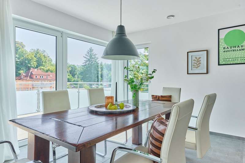 This impressive new-build project combines timeless Bauhaus architecture with modern design and offers everything your heart desires on approx. 220 m² of living space. The elegant and strikingly designed house is located on a plot of approx. 450 m² in the Kirschhausen district. The open floor plan creates a light-flooded living atmosphere and allows for flexible usage options. The highlight is the integrated granny apartment, which can be accessed via the staircase or from the outside. Perfect for guests, family members, a home office or as an additional source of income. The spacious and fantastic terraces invite you to relax and linger outdoors - ideal for sociable evenings or quiet moments. The house is built to KfW 40 standard, which ensures outstanding energy efficiency and reduces your costs in the long term. High-quality materials, clear lines and innovative architecture make this house truly unique. Modern living and comfort come together here - the perfect place to realize your lifestyle!