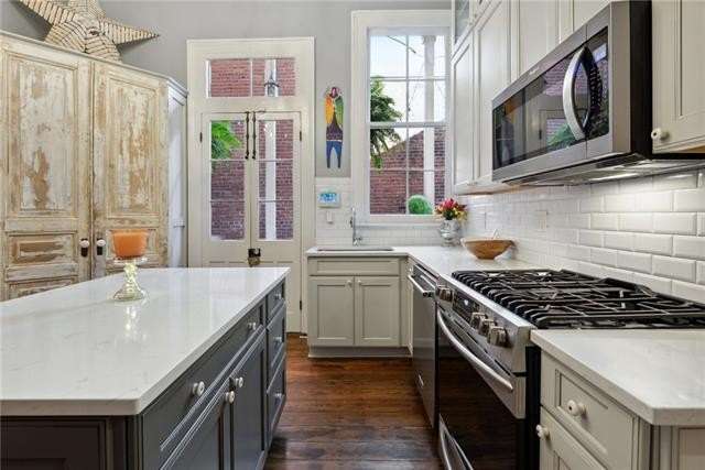 [Seller is a licensed real estate agent in Louisiana.] This gorgeous condo is in the center of the action in the French Quarter. Step outside and watch the parades and second lines go by. You're only steps away from the best bars in the Quarter, so bring your friends (this condo can sleep 8) and have Fun Fun Fun! When you're done, pull the gate shut and you're back home in privacy with outdoor seating under a magical string lit courtyard. There are a total of 3 bedrooms and 3 full bathrooms which includes a separate beautifully restored guest house. The guest house and or main house can also be rented for 61 days or more for additional income. Each room has it's own entrance/exit to outside, making this condo a true unicorn!!! You cannot get more central to the action and the vibrancy of the French Quarter than you would be here! Meticulously renovated with upgraded marble bathrooms (stunning ensuite with walk in closet/laundry in main bedroom) and a chef-designed kitchen (you can entertain and host dinner parities to your hearts content) are paired with charming period accents throughout. You know you're in the historic French Quarter in this home. The downstairs bedroom can be used as an office too. This beautiful home provides the best of both worlds--FUN and LUXURY. It's sold furnished and move-in ready! No renovations needed! This would make a great property for rental income by renting the guest house or main house and keep one for yourself or rent both. It also makes for a great company owned property for entertaining executives during events like Mardi Gras or the upcoming Superbowl.