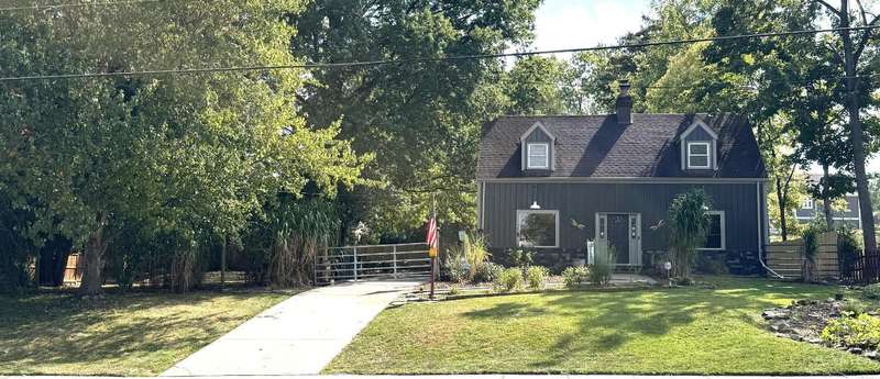 Open House Saturday 12-1:30! Spacious rooms thru-out this charming and very attractive Cape Cod home! Sits back on private double lot with electric gated entry operated by remote. Oversized two car garage with car lift and tons of driveway space for cars, trailers... great yard space and relaxing fire pit. Interior offers spacious living room, dining room and family room. Attractive kitchen with loads of cabinet and pantry space. Hardwood floors throughout. Two fireplaces, one with insert. Charming wall of built-ins and great closet space in spacious bedrooms. Additional shower in basement. A must see, one of a kind home, inside and out.