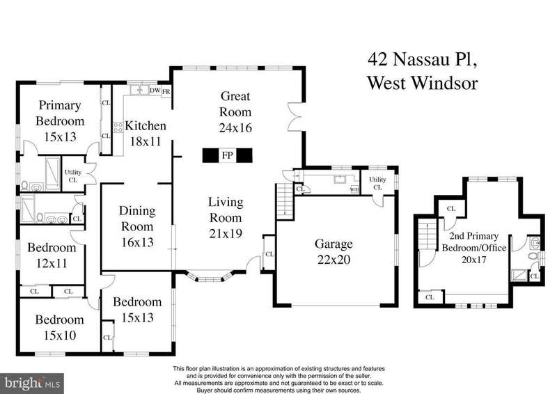 Pride of ownership is evident in this spacious and beautifully updated home boasting 5 bedrooms and 3 full bathrooms, There are solid oak hardwoods throughout most of the home and lovely updated baths with marble counter tops. The living room and great room are light filled and share a dual sided fireplace. Kitchen features granite counter tops, SS appliances and gas range, The primary bedroom has an en-suite bath, 2 closets and French doors to a private paver patio. The large level yard backs to a tree line for privacy. The furnace, AC, and roof are all newer. Truly a custom move in ready home. Award winning West Windsor-Plainsboro School system. Close proximity to the train station, shopping and major arteries.