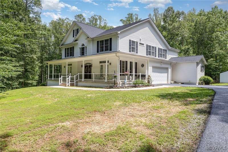 Welcome to 160 Walnut Ridge Dr -Your Dream Home Awaits! Set on a beautifully fully fenced lot, 11.4 acres! This stunning property offers the perfect blend of elegance, functionality, and tons of space.You'll fall in love before you even step inside thanks to the expansive country-style front porch & brand new concrete walking path. Step into the home through a bright, open entryway w/grand staircase & entry flowing into a spacious layout w/charming hardwood floors throughout main level. Updated kitchen, featuring BRAND-NEW quartz countertops, brand new custom tile backsplash, & an inviting eat-in dining area w/large windows that flood the space w/ natural light. The bright & open concept living room is the perfect gathering spot, showcasing a gas fireplace, custom columns, & arched windows that create an elegant & comfortable atmosphere. The main level also features a 1st-floor bedroom w/an attached full bath, perfect for guests or multigenerational living. Also included on the 1st floor- Enjoy a dedicated office, a formal dining room, and a formal living room-each w/atrium doors leading out to the front or back porch. Huge 3 tier deck off the back of the house which overlooks the spacious yard. New roof, 2024. Upstairs, you'll find 3 bedrooms w/ 2additional rooms for office or rec, all with brand-new carpeting & a spacious landing area. Luxurious primary suite features a gas fireplace, large windows that bathe the room in light, & a spa-like en suite bathroom w/ a double vanity, soaking tub, walk-in shower, & 2 walk-in closets. The fully finished walk-out basement provides even more space, complete w/ a full bathroom, ample storage, and flexible areas perfect for a home gym, music studio, or recreation room. And don't miss the incredible 48'x40' detached garage/workshop, complete with a car lift. With a 2-car attached garage, incredible interior updates, and unmatched outdoor amenities, this home offers the best of both luxury & comfort. Located in sought-after Stafford- less than 1 hr from DC, it's a must-see!