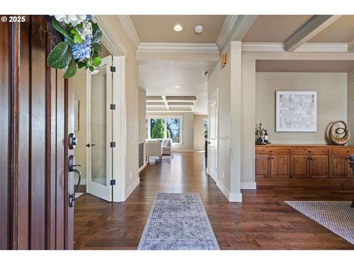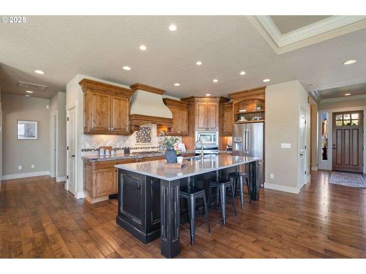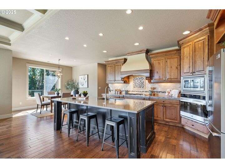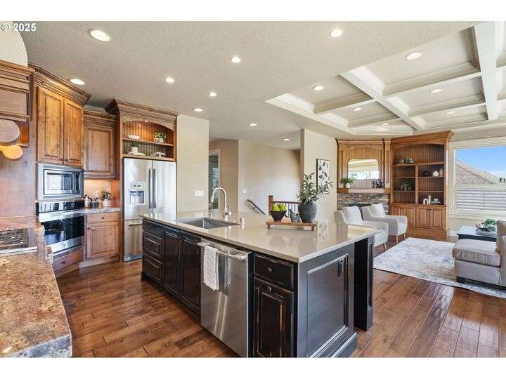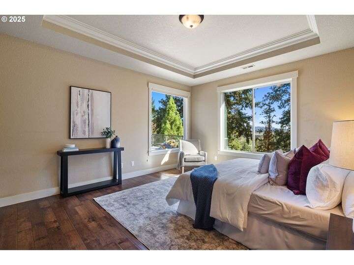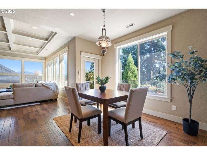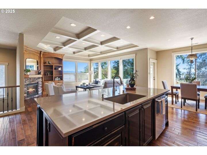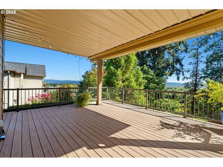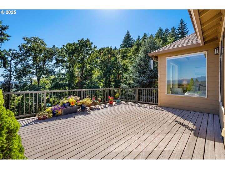 Welcome to a stunning home with a main-level primary suite offering privacy and captivating views of Mt. Hood, woods and territory. This meticulously maintained, one-owner residence showcases the sought-after open great room floor plan with four bedrooms, a dedicated office, and an additional family room. The inviting island kitchen — featuring newer quartz countertops — includes a breakfast bar, making it perfect for both casual dining and entertaining. Expansive windows fill the interior with abundant natural light. Savor your morning coffee or evening wine on the Trex deck while soaking in breathtaking views of Mt. Hood and partial river vistas. The lower level impresses with more amazing views from the bedrooms and great room, plus a convenient kitchenette—ideal for guests or multi-generational living. You’ll also find generous walk-in storage and a spacious three-car garage for ample parking and organization. The private backyard is a rare gem, complete with a flagstone patio and additional scenic views. Ideally located near downtown Camas, parks, trails, and freeway access, this exceptional home is served by the award-winning Camas School District. A perfect blend of comfort, convenience, and panoramic beauty—ready to welcome you home.
