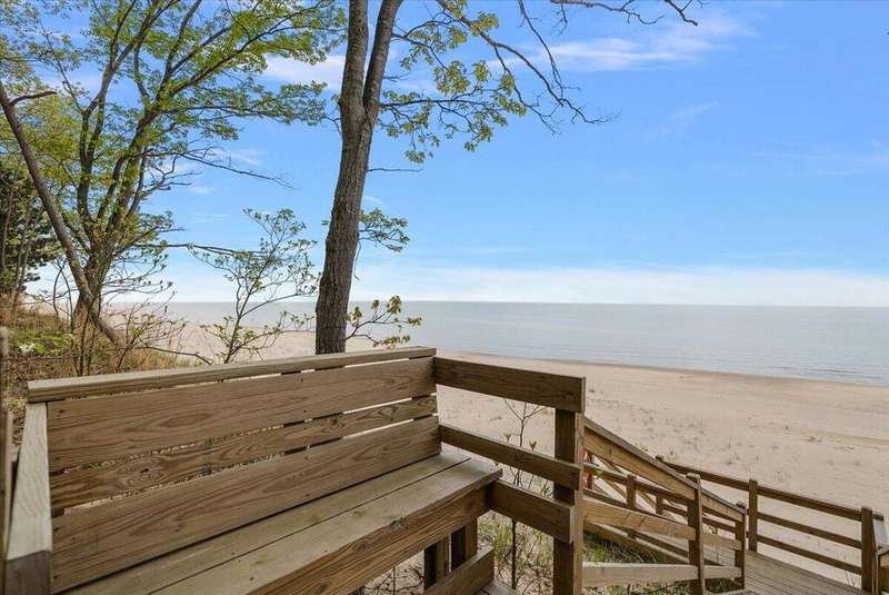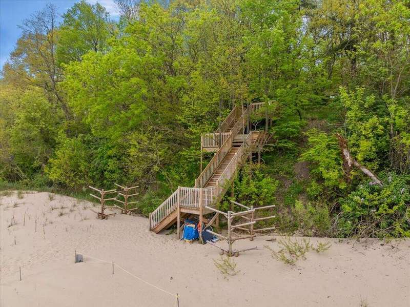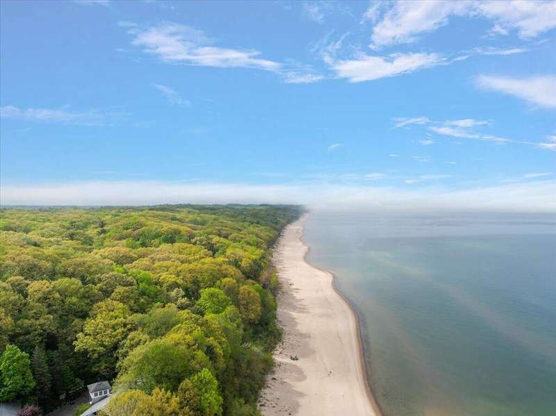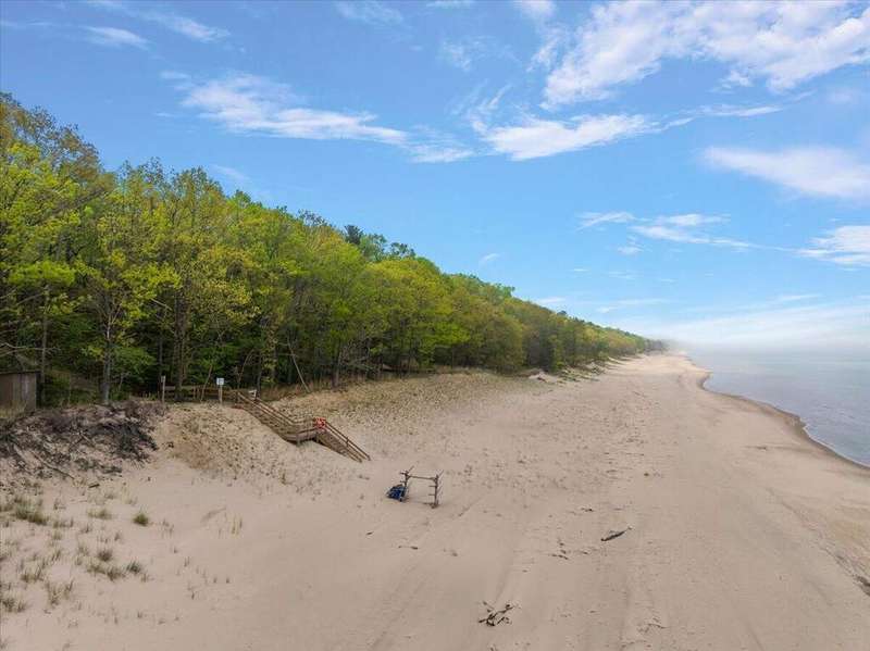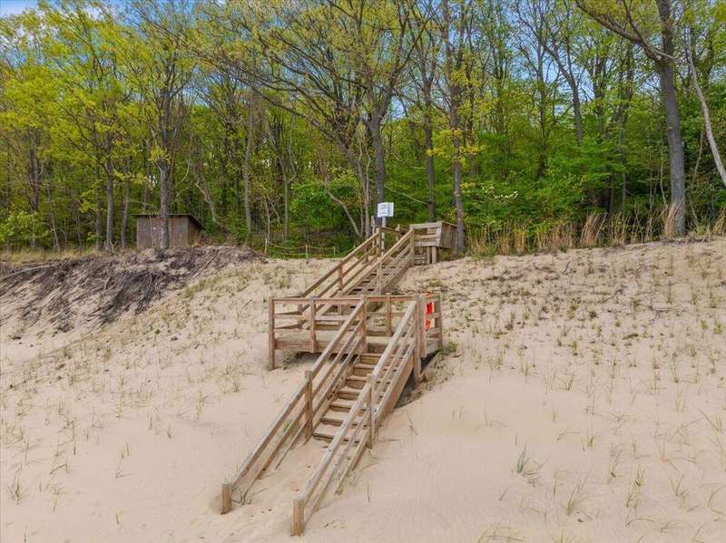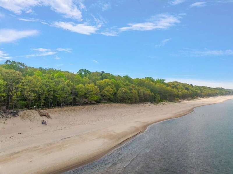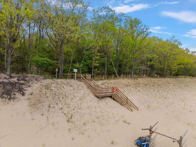 This quality built, two-story traditional home is located on a secluded 5 acre wooded dune lot within the Wildwood Association with 2,600 feet of a natural, wide, sandy, private beach on Lake Michigan. This was dedicated to all lot owners to use on June 25, 1928 with two private access areas. The main and upper living space for the residence is 3,212 SF with 4 spacious bedrooms, 4-1/2 bathrooms, a full unfinished basement, and a 3-car garage. In addition, Lot 47 is across the street from a 50 acre common forest and wetland area where you can walk and hike. Location, location, location! Peace, solitude and privacy is why Wildwood is very unique compared to most developments along the shores of Lake Michigan. Lost Dunes Golf Course is contiguous with Wildwood, and you are only moments away from wineries, breweries, shopping, and restaurants here in Michigan's Great Southwest.