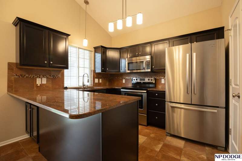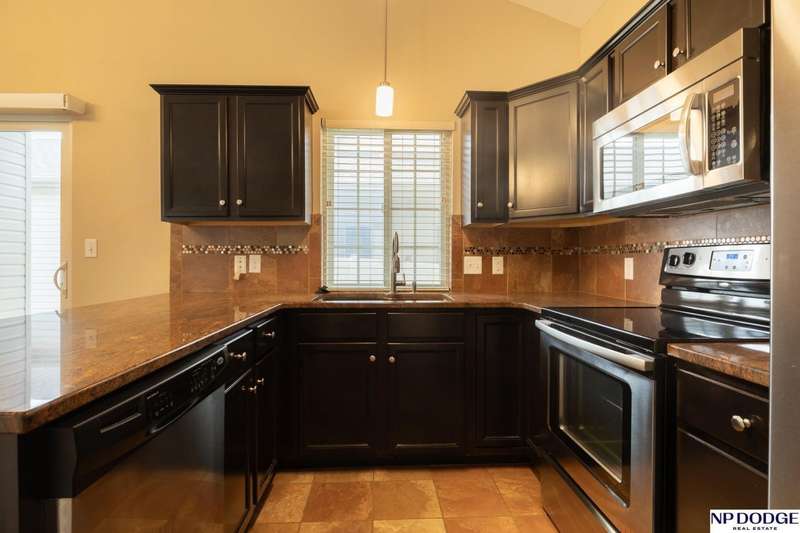 This one owner Stonybrook Townhome features vaulted living/kitchen/dining and a large ensuite primary bedroom with big walk-in closet and remodeled shower with double vanity. The second bedroom is close to the full hall bath, and full washer/ dryer are near the bedrooms. With an egress window and rough-in for bath, the basement is ready to be finished should a new owner desire. The kitchen and bath cabinetry and countertops are lovely, and all appliances stay. The dining area features sliding doors that connect to a patio. This northeast location has quick access to the interstate, is close to Mahoney Golf Course and many shops and services and is ready for new owners.