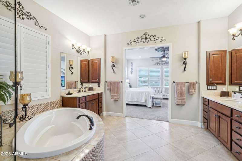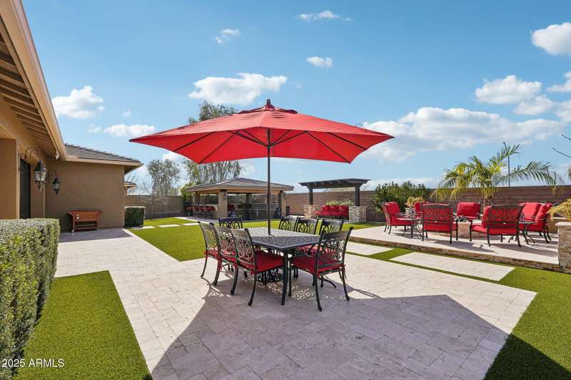 2 Newly installed Trane HVAC units!!Welcome to luxury living in the prestigious guard-gated Blackstone community! This exquisite single-level,mountain/sunset views offers 3 bedrooms,3.5 bathrooms and office,all within an open and bright floorplan. The gourmet kitchen is a chef's dream, featuring all new GE Monogram appliances,including a built-in fridge,oversized kitchen island with cabinets on both sides.extended cabinetry in the dining area and huge walk-in pantry.Highlights includes seller attention to detail with all new light fixtures and oil rub bronze door handles/hinges, plantation shutters and new water heater. Step outside to your private oasis, where the backyard has been meticulously renovated.Enjoy the travertine pavers,gas fire pit,large gazebo,and outdoor kitchen