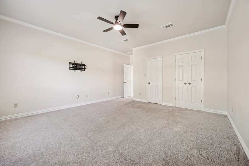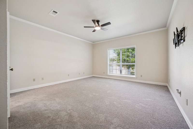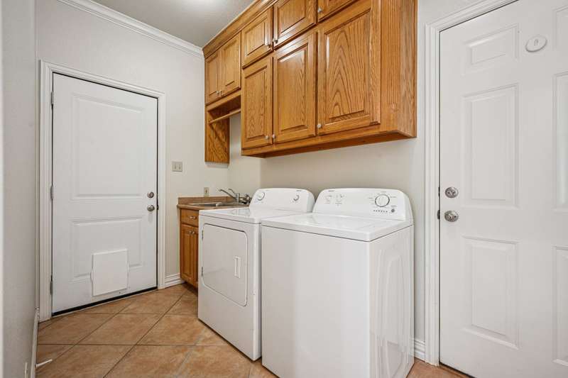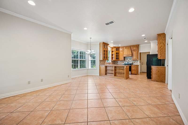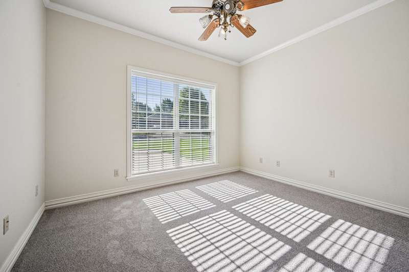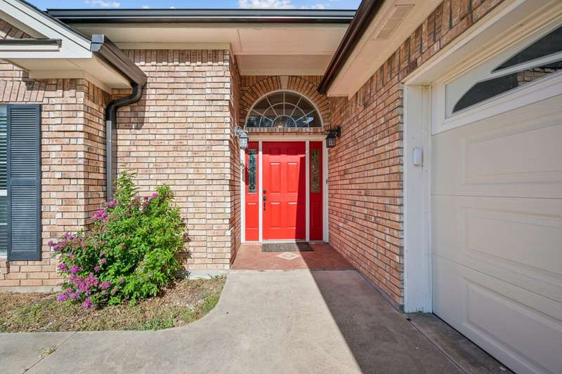 This lovely home is welcoming and feels like home. Through the front door, you will find a large entryway that opens into the living room-dining room combination. This space is large enough for a formal dining table and still allows plenty of room for the living area. To the right of the entry is the well-laid-out kitchen with granite countertops and cabinets for storage and a walk-in pantry. The kitchen is open to the den with a fireplace, access to the backyard, and a bay window for a small breakfast table if desired. To the left of the entry is the hallway that leads to two guest bedrooms and the guest bath. At the end of the hall is the large, oversized primary bedroom with a walk-in closet and a large primary bath with a jetted tub and separate shower. This home has a large lot for plenty of space to enjoy any outdoor activities. There is a large utility room and a half bath off the kitchen. Home includes a Washer, Dryer, and Refrigerator.