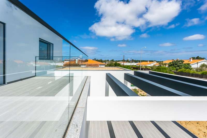 Modern 3-bedroom detached villa and an extensive outdoor area with garden and swimming pool, located in a quiet and highly sought-after residential area in the Costa Vicentina Natural Park area in Aljezur, Algarve. This fantastic villa, recently built, has two floors, with large indoor and outdoor areas and private covered parking with a pergola for two cars. On the first floor there is an office with a bathroom that can easily be converted into an additional bedroom, a large and bright open-plan living room and a modern kitchen with plenty of storage space. The bedrooms, all with en-suite bathrooms, are spacious, bright, equipped with air conditioning and built-in closets, and are spread over the two floors. The two bedrooms on the second floor each have a fantastic balcony, and the bedroom on the first floor has a terrace, which gives access to the outside. With good access and a privileged location, it is close to Monte Clérigo beach and Arrifana beach. Faro International Airport is about 80 minutes away. For surf lovers, this is an excellent area to spend hours of fun and enjoy the sea, or simply enjoy the fantastic climate of the Algarve all year round. CHARACTERISTICS: Plot Area: 794 m2 | 8 547 sq ft Area: 278 m2 | 2 991 sq ft Bedrooms: 3 Bathrooms: 4 Energy efficiency: A FEATURES: 3 bedrooms Office Swimming pool Air conditioning Balcony / Terrace Private parking