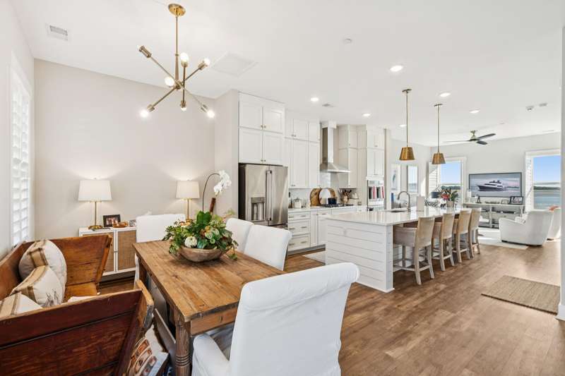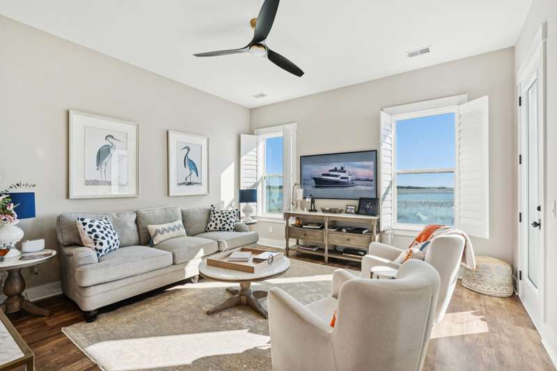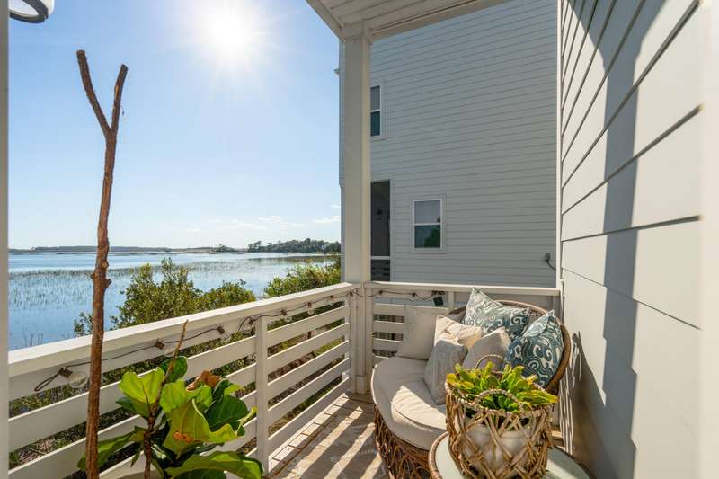 Amazing unobstructed views of both Folly Beach and Folly River from your rooftop deck. Views of the waterfront can also be enjoyed from every window in the home. Explore the natural surroundings with easy water access via the community dock, and Folly Beach is just a ten-minute bike ride away! Nestled on Bowen Island and just minutes to Folly Beach, this townhome, built in 2022 with a charming board and batten elevation and brick pavers. The elevated construction accommodates a two-car garage with ample storage for a golf cart, bikes, kayaks and more. The property has been updated and a list of features are noted in the documents section.The first floor of the home is bright and inviting with 10-foot ceilings, 8-foot doorways, updated lighting, plantation shutters and modern trim casing around doors and windows. The gourmet kitchen is complete with gas range and stainless-steel hood, double wall ovens and an expansive shiplap island with quartz counters. White cabinetry reaches the ceiling, and the oversized pantry provides even more storage space. While the island offers casual bar top seating space, formal dining space is located at the front of the home. An office (presently used as an exercise room) is next to the living room. The living room has access to the main level porch overlooking the marsh while the dining area has its own porch on the front of the home. A powder room completes this level. The second floor contains three bedrooms, each with tray ceilings as well as the laundry facilities. The primary bedroom is large with a custom California Closet system and the ensuite offers a quartz vanity with dual sinks and a large walk-in tiled shower with bench. The two guest rooms enjoy marsh views and one of the rooms has direct access to the guest hall bathroom with tile surround bathtub. Designed for maximum enjoyment of the surrounding marsh, the third-floor rooftop patio offers your own slice of paradise to enjoy anytime. Sliding doors open to the oversized deck with plenty space for outdoor furniture. The additional living space includes a full bathroom as well as a beverage cooler and dry bar. This property has an elevator shaft in place to all three floors which optimized additional storage with custom California Closet Systems. Access the home via the interior stairwell on the garage level. The home is in excellent condition and has been well maintained. Conveniently located to shops, restaurants, Harris Teeter, James Island library, county park at the end of Folly Beach as well as the brand-new Folly Pier.