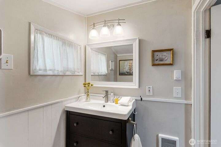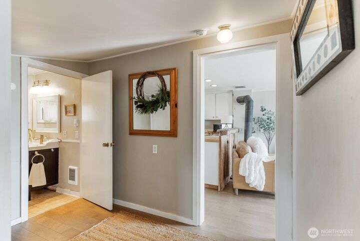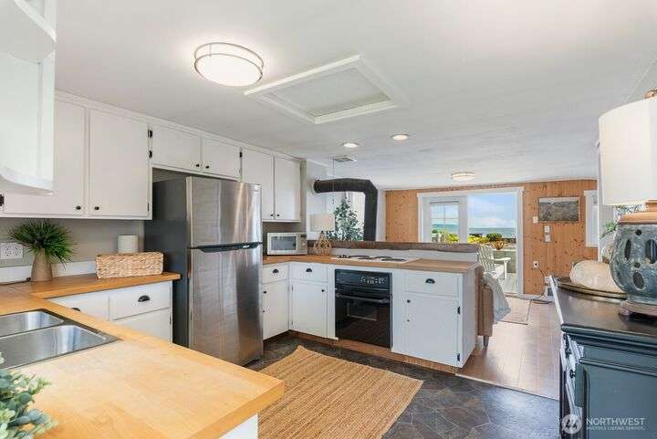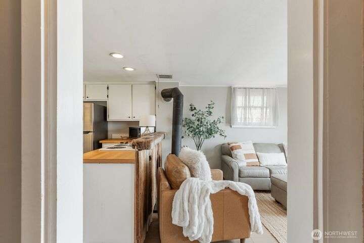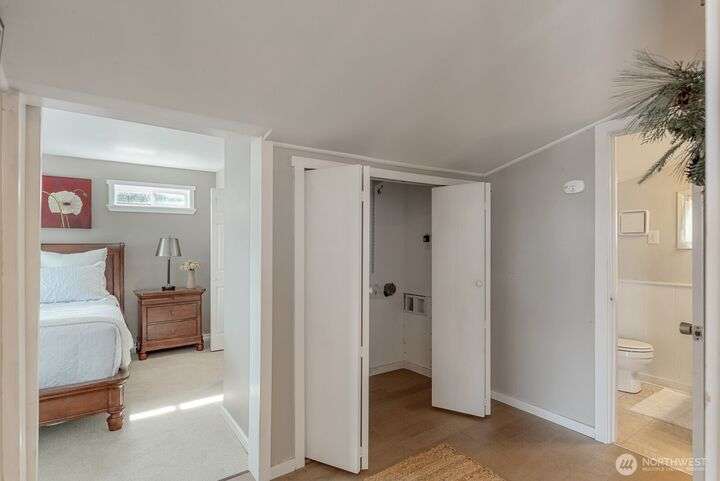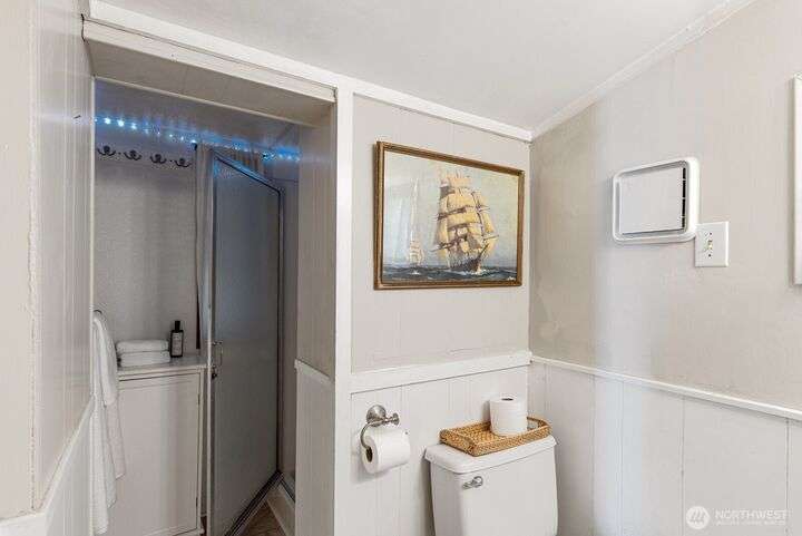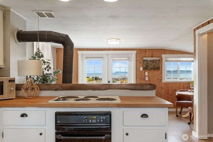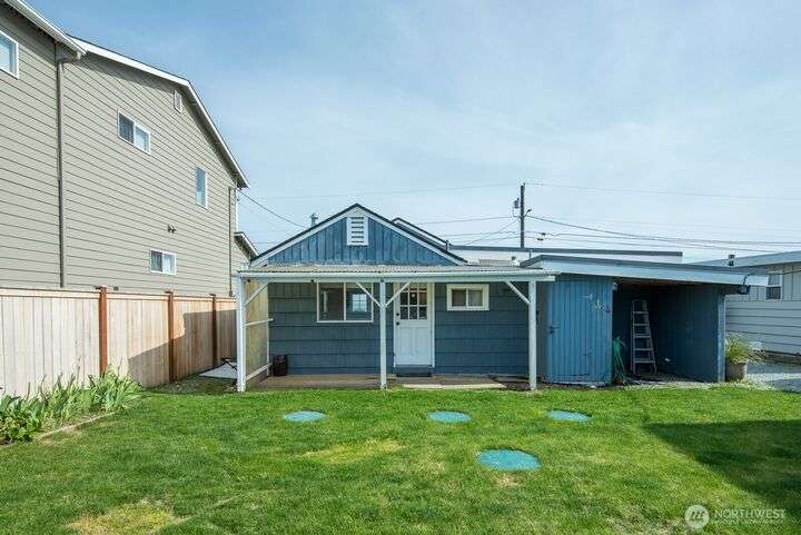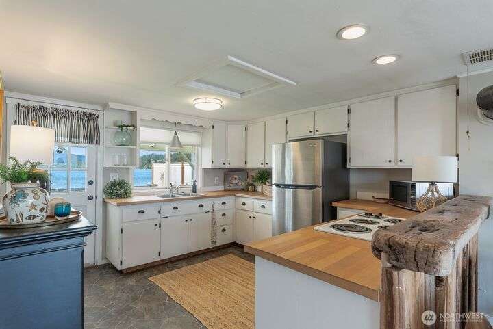 There is still time this Summer to enjoy this cabin w/rare 50' of level waterfront w/all day sun & water on both sides! Enjoy breathtaking views of Port Susan, Barnum Point, & Mt. Rainier from this magical spot! Special features: 1 bdrm w/large WI closet, ¾ bath, cozy wood-stove, guest bungalow, & French doors out to composite deck. Outdoor living shines w/space on both sides, garden area, firepit, & ample parking. Fantastic beach for treasure hunting and strolling along. This cabin lives larger than it's square footage! Perfect for a weekend escape, vacation rental, or full-time residence. New 2 bedroom septic system recently installed. Experience crabbing, fishing, bird life & waterfront living in a sought-after Island community!