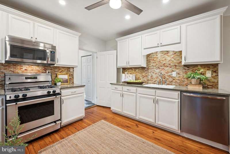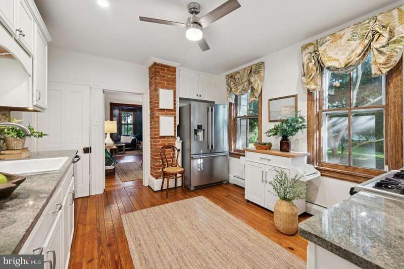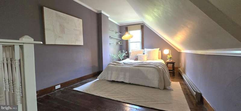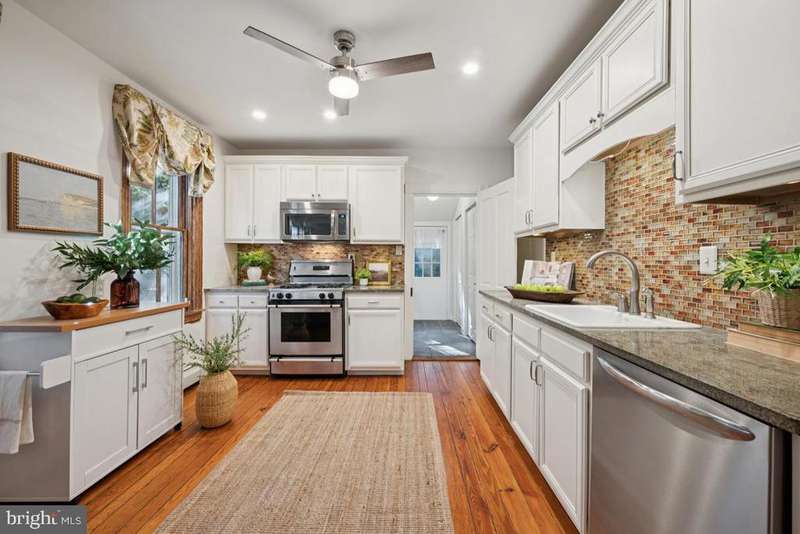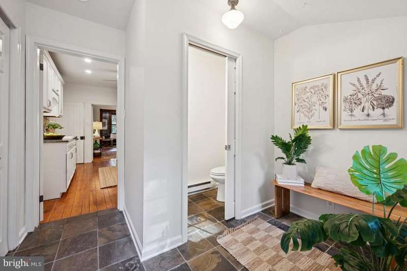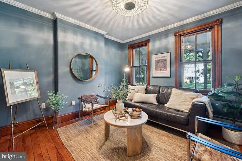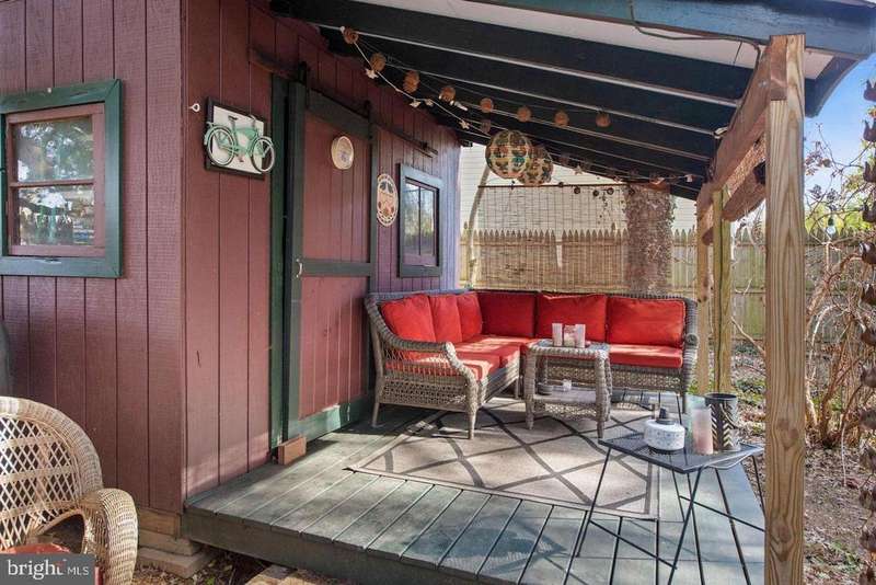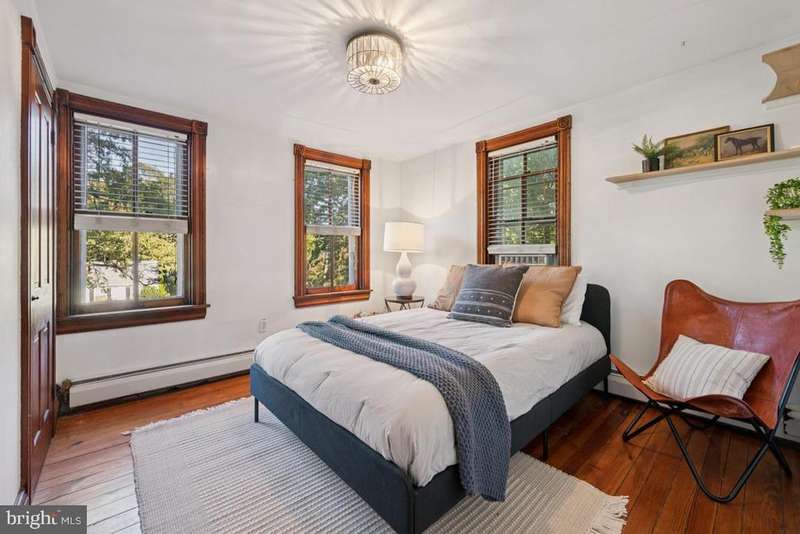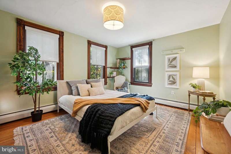 Experience the best of in-town living with this charming twin home offering the perfect blend of historic character and modern convenience. This enchanting property is nestled on a beloved tree lined street, up the block from beloved Zelley Park and a short walk to the library, REC center and shops on Main Street. The wrap around covered front porch is a welcoming and versatile extension of the home. Inside you will be pleased to find everything is move-in condition. The first floor offers a cozy living room and ample dining room each with simple yet elegant new light fixtures. A cheerful, updated kitchen with modern comforts and new LED recessed lighting is adjacent to the back entry with mudroom, two closets and powder room all freshly painted. Period details including exposed brick and intricate moldings blend seamlessly with the updated aesthetic in this home. The second floor offers two bedrooms and an expanded full bathroom, freshly painted with closet, dressing space and new LED light fixture. The third floor hosts a wealth of space to suit a variety of needs, bedroom with modern built-in closet nook, sitting room, work space, exercise room or all of the above! The full basement with laundry is very comfortable and can be used for storage, workshop or play area. The gracious back yard will display an array of colors throughout the year thanks to mature trees and flowering shrubs. A newer shed with covered lounge area in the far corner of the yard offers more storage too...a serene retreat! Additional highlights include gas heat, rich hardwoord floors and updated electric. This 3 bedroom, 1.5 bathroom home is more than move-in friendly it is move-in and feel great in a fantastic location just a short walk to town, parks and Moorestown's fine schools.