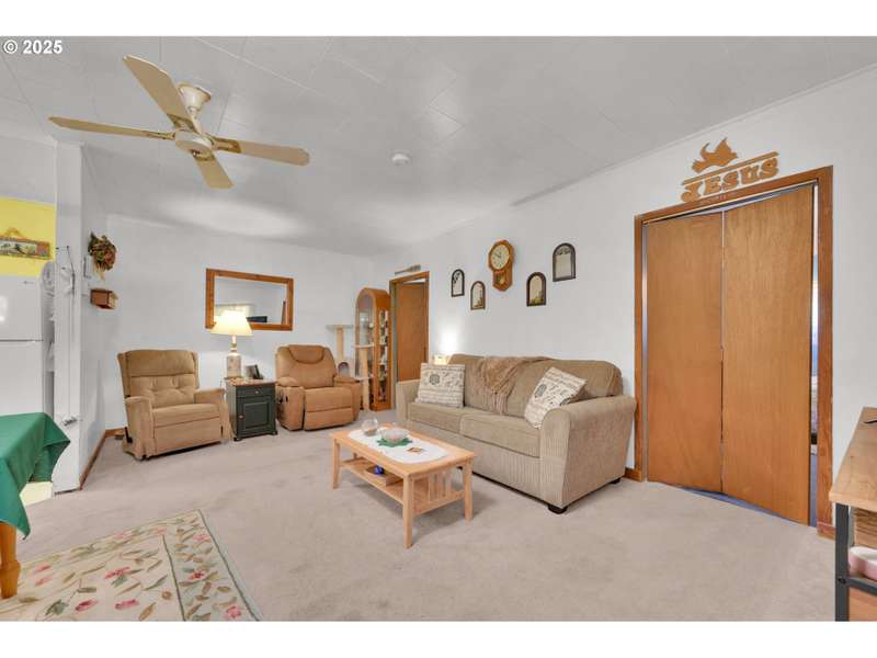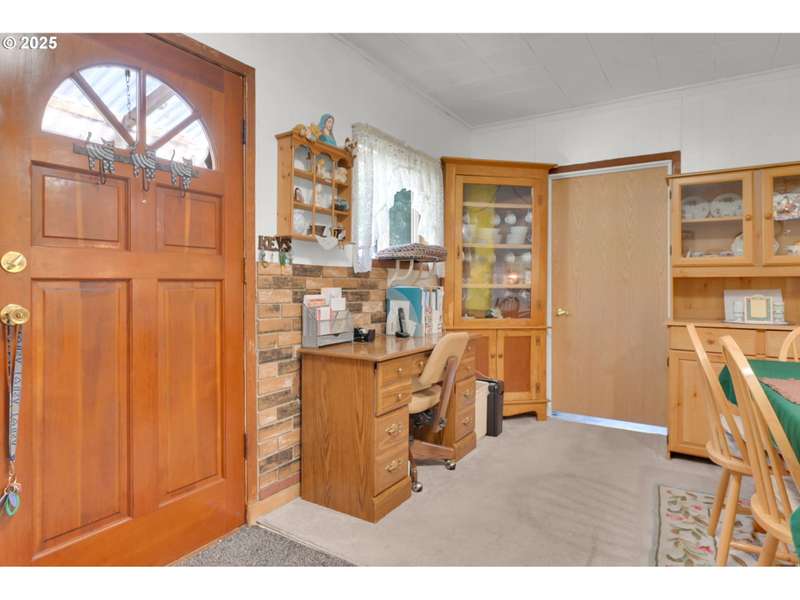 Charming rural property minutes from Drain and short drive from Cottage Grove. Home features 2 spacious bedrooms and large bathroom. Comfortable living room, dining area and cheerful kitchen with nook and laundry area. Ample pantry storage on enclosed back porch. Forced air heat with heat pump. Covered back deck and metal building. Yard area is gently sloped down to creek. Beyond creek is hillside with trees. Metal outbuilding for great storage. This is a sweet property in a quiet location with lots of potential.