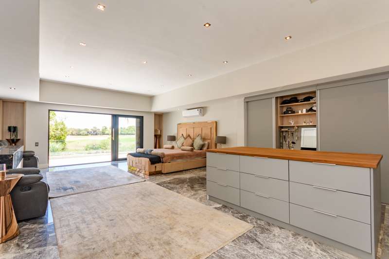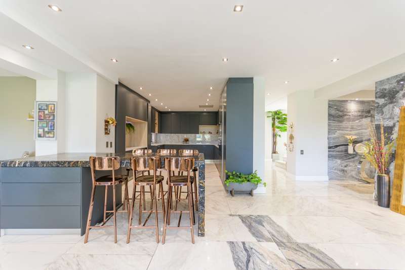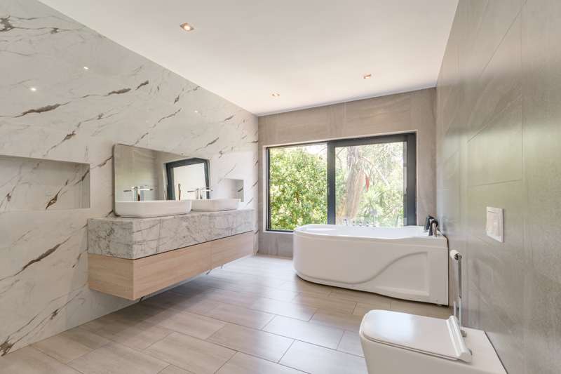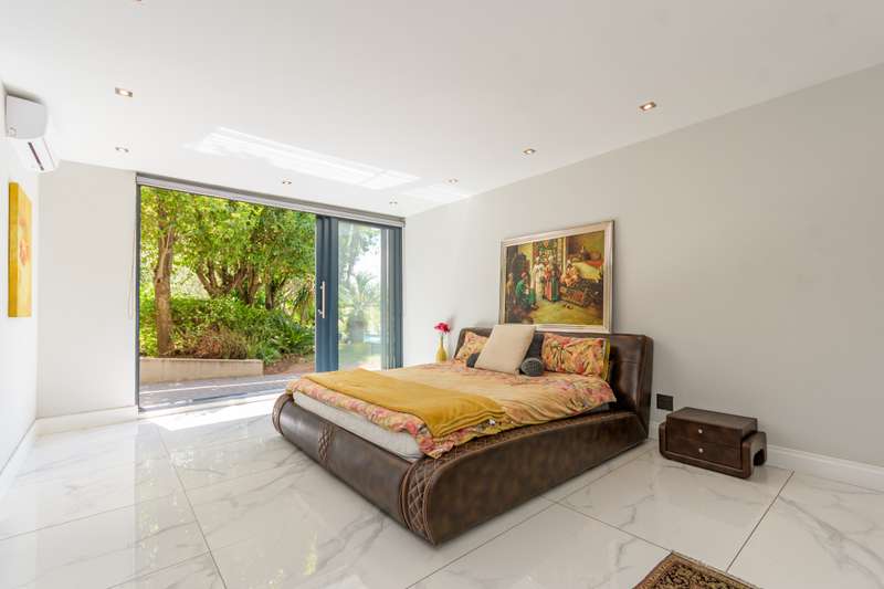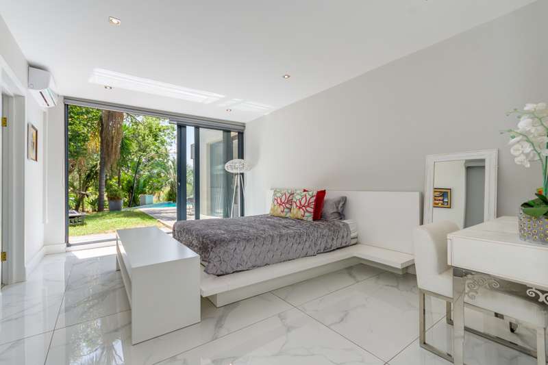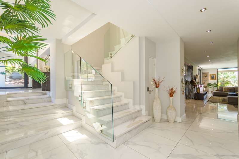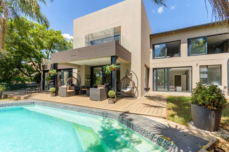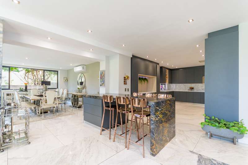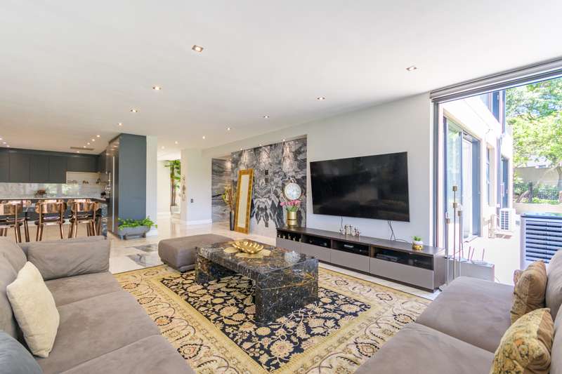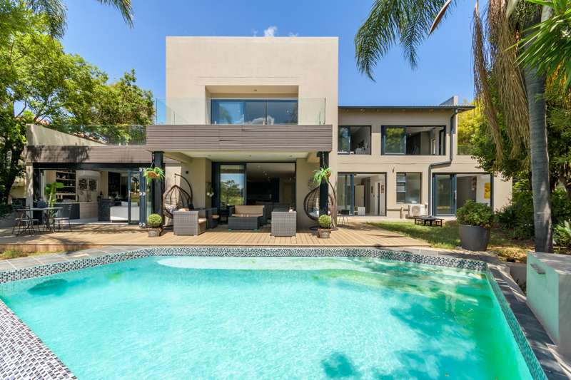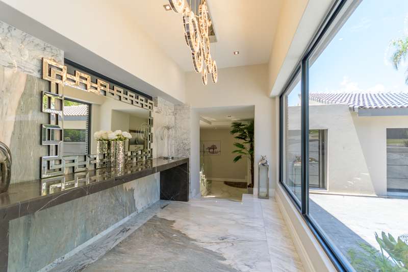 This luxurious modern home in the prestigious Dainfern Golf Estate epitomizes contemporary living at its finest. Nestled on the golf course with a coveted north-facing orientation, this residence offers an unparalleled blend of elegance, comfort, and style. Boasting four spacious bedrooms and four and a half bathrooms, each room is designed with meticulous attention to detail, providing a perfect sanctuary for relaxation and rejuvenation. The expansive floor-to-ceiling windows throughout the home not only flood the interiors with natural light but also offer stunning panoramic views of the lush golf course, creating a seamless connection with the outdoors. The downstairs area features an open-plan layout that is ideal for both casual family living and sophisticated entertaining. The living and dining spaces flow effortlessly onto the patio and pool area, blurring the lines between indoor and outdoor living. This open-plan design encourages a harmonious lifestyle where one can enjoy the best of both worlds—whether it's hosting a lavish dinner party or enjoying a quiet evening by the pool. Elegantly decorated with a palette of white marble and stone tones, the home exudes a sense of timeless luxury and sophistication. The bathrooms, adorned with striking dark marble accents, add a touch of opulence and create a serene retreat for unwinding after a long day. The high-end finishes and thoughtful design elements throughout the home reflect a commitment to quality and a keen eye for aesthetics. The outdoor patio and pool area serve as a tranquil oasis, perfect for enjoying the beautiful South African weather. Whether it's a sunny afternoon by the pool or an evening gathering with friends and family, this outdoor space offers a serene and picturesque setting against the backdrop of the meticulously maintained golf course. This exquisite modern home offers an exceptional lifestyle in one of the most sought-after locations. With its combination of luxurious amenities, elegant design, and prime golf course location, it presents a unique opportunity to experience the pinnacle of contemporary living. Don't miss the chance to make this remarkable property your own—schedule a viewing today and step into a world of unparalleled luxury and style.