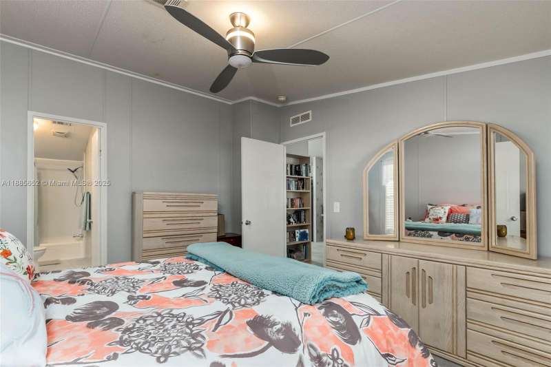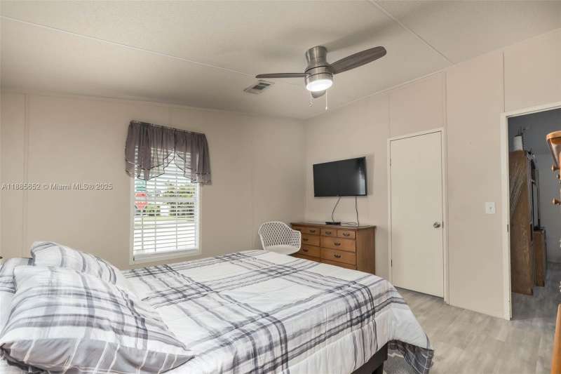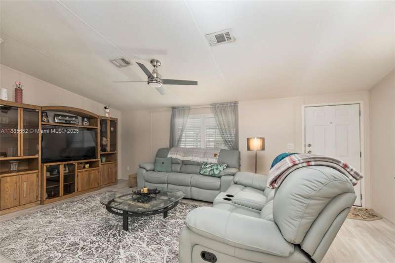 Welcome to this BEAUTIFUL, meticulously maintained manufactured home in the 55+ Community of Park City Estates where YOU OWN THE LAND! This stylishly designed home features a covered driveway & a large covered, screened porch at the front entrance with serene views of the back canal on a corner lot. It offers plenty of driveway space for parking and a spacious Storage Shed. Home has a lovely updated kitchen and bathrooms, laminate flooring in common areas, and two large bedrooms with en-suites and walk-in closets. Located in a well-kept community that offers 3 pools & clubhouses, mini golf, shuffleboard, game nights, & many other amenities. A great location close to shopping, dining, and transportation, with quick access to beaches and the airport. Home has complete Accordion Shutters!