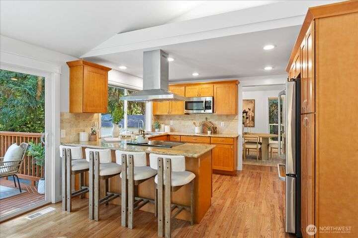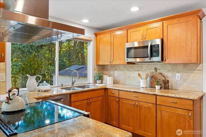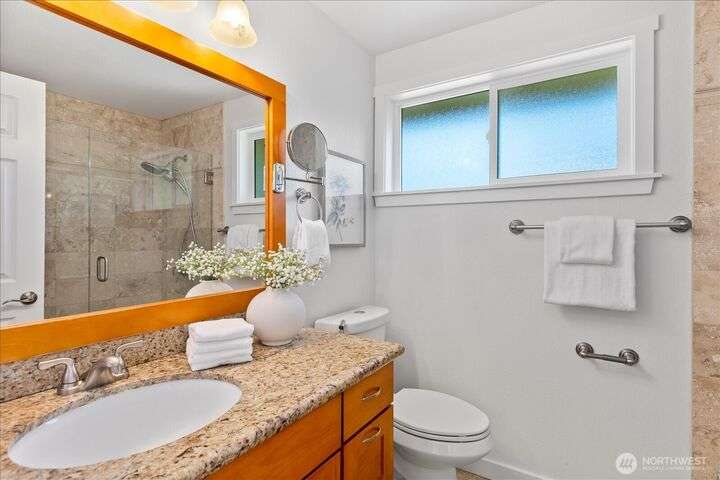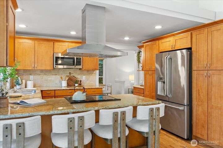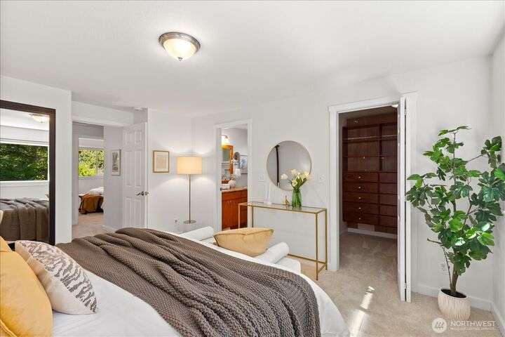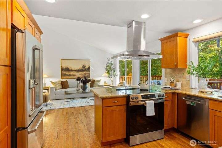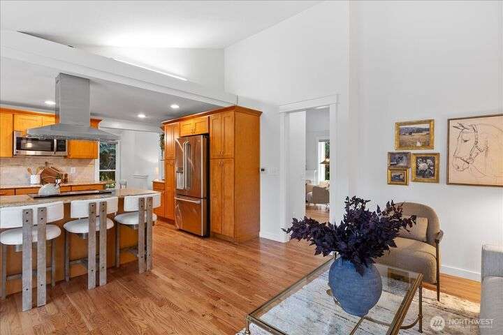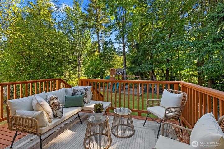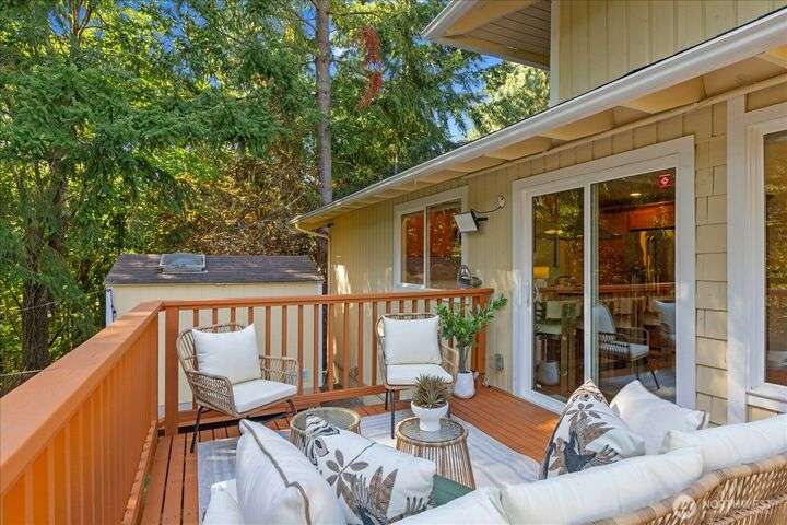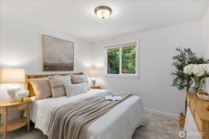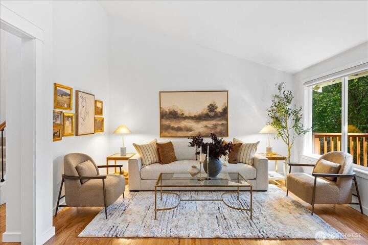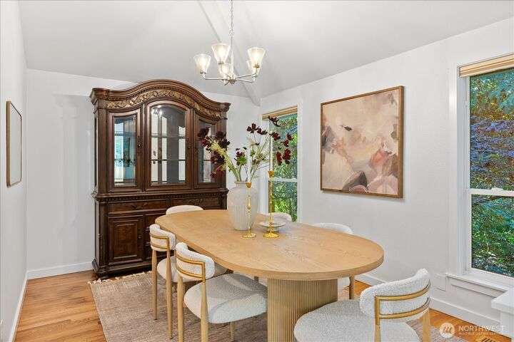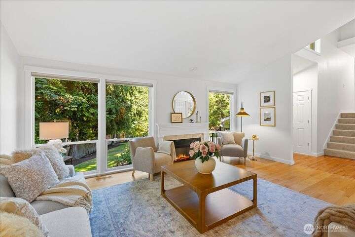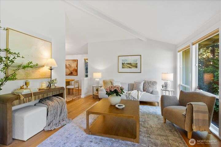Private & peaceful, this tranquil Innis Arden residence is situated up a secluded driveway nestled amidst lush greenery. Offering a serene, wooded setting, open floor plan, soaring entry ceilings, level fenced back yard & exclusive beach access right outside your gate! Recent upgrades enhance its appeal, w/ a thoughtful remodel in 2014, a powder room addition in 2021 & recently replaced appliances. Beautiful hardwood floors, new carpet & paint, elegant primary suite & wifi enabled sprinkler systems. Discover a retreat tailored for every season. Enjoy quiet evenings at home or take a short stroll to the beach or Boeing Creek park. Friendly neighborhood with clubhouse, pool, trails, courts & community park. Come fall in love with your future!