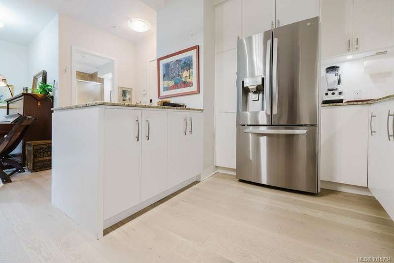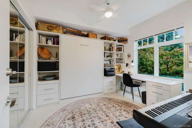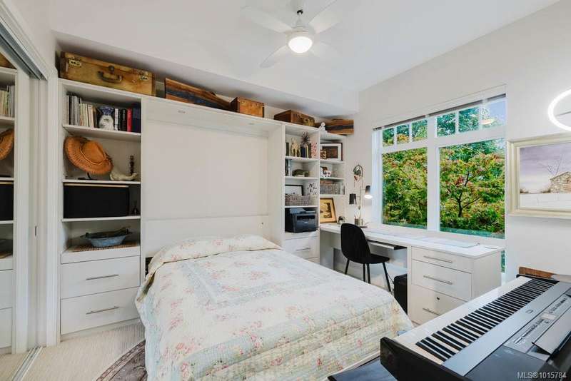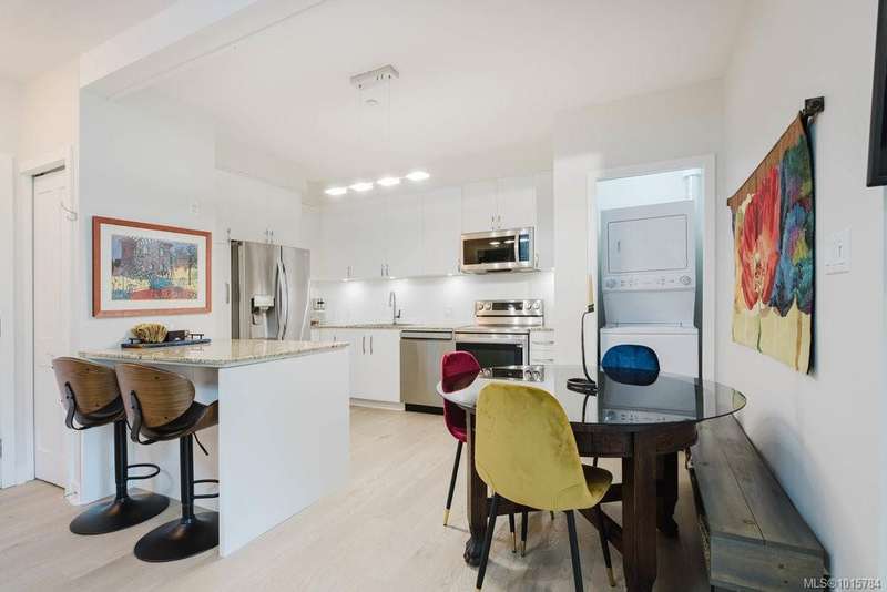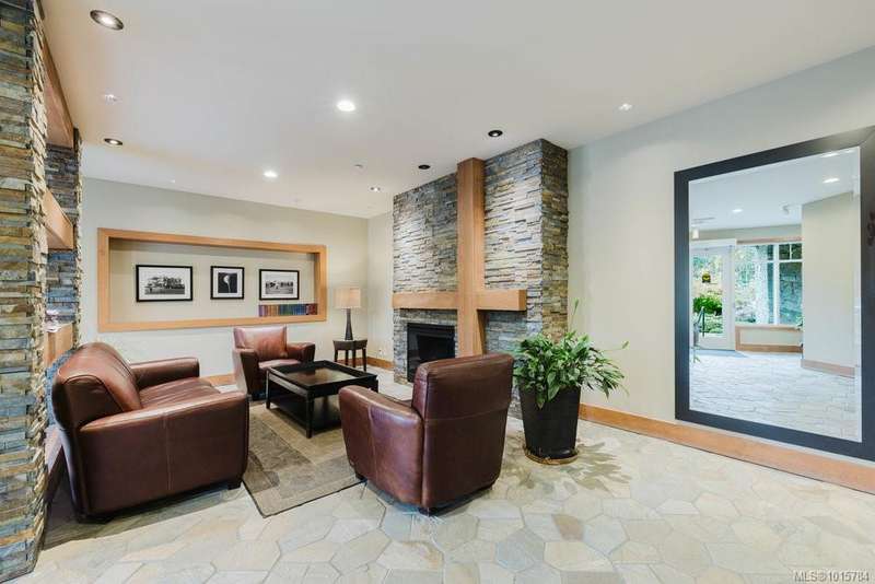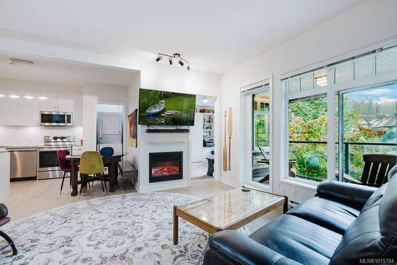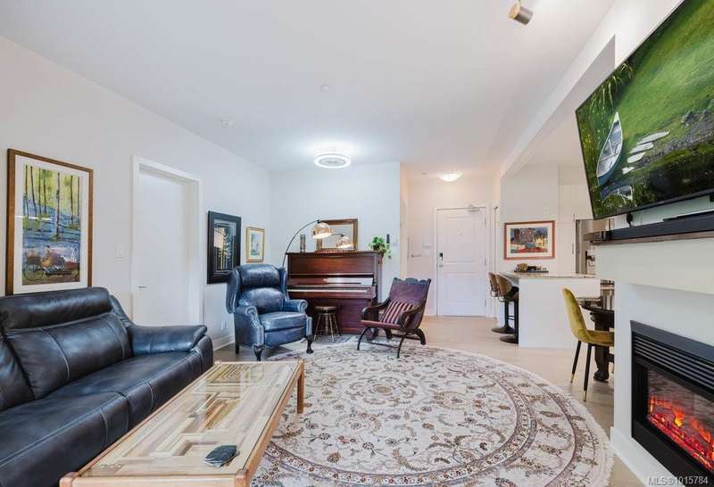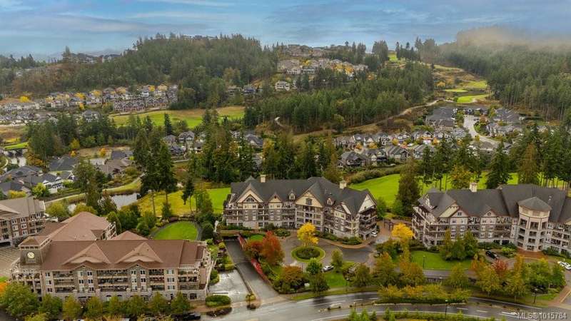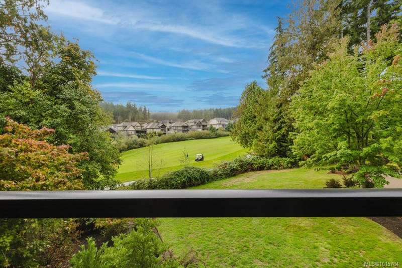 Step inside this beautifully updated 2-bed, 2-bath condo overlooking the 9th fairway at Bear Mountain Golf Resort and feel instantly at home. The open-concept layout welcomes you with rich new plank flooring, 9-ft ceilings, and a cozy electric fireplace that sets the tone for relaxed luxury. The chef-inspired white maple kitchen features granite counters, a large island, and stainless appliances, perfect for entertaining or quiet evenings in. Both bathrooms have been stylishly renewed, and the flexible second bedroom includes a custom Murphy bed and built-ins—ideal for guests or a home office. Step onto your private covered balcony to enjoy peaceful golf course and mountain views, where you can BBQ year-round surrounded by nature. Secure underground parking, storage, and a pet-friendly, quiet community complete this rare find.Only minutes from shopping, dining, and spa amenities—your resort lifestyle begins here. 90 day minimum rentals, one dog / cat / rabbit permitted.