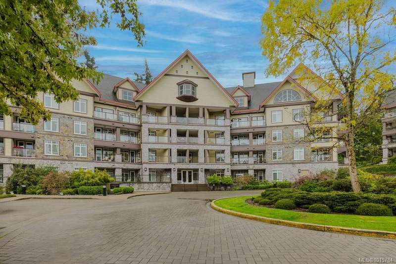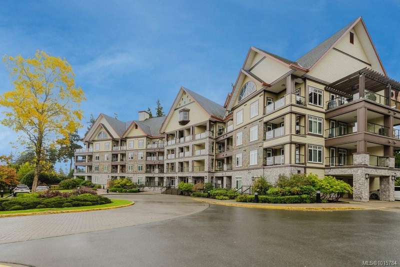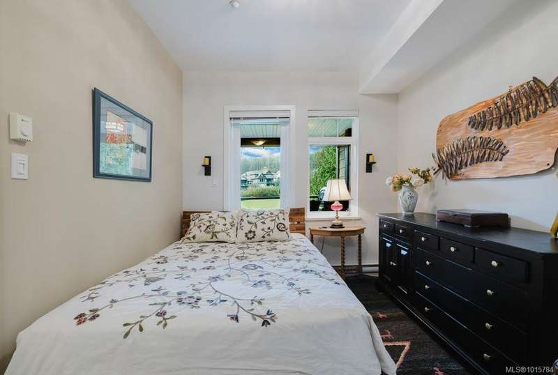 BEST BUY ON BEAR MNT: Step inside this beautifully updated 2-bd, 2-bthcondo overlooking the 9th fairway at Bear Mountain Golf Resort and feel instantly at home. The open-concept layout welcomes you with rich new plank flooring, 9-ft ceilings, and a cozy electric fireplace that sets the tone for relaxed luxury. The chef-inspired white maple kitchen features granite counters, a large island, and stainless appliances, perfect for entertaining or quiet evenings in. Both bathrooms have been stylishly renewed, and the flexible second bedroom includes a custom Murphy bed & built-ins—ideal for guests or a home office. Step onto your private covered balcony to enjoy peaceful golf course and mountain views, where you can BBQ year-round surrounded by nature. Secure underground parking, storage, and a pet-friendly, quiet community complete this rare find. Minutes from shopping, dining, and spa amenities—your resort lifestyle begins here. 90 day minimum rentals, one dog / cat / rabbit permitted.