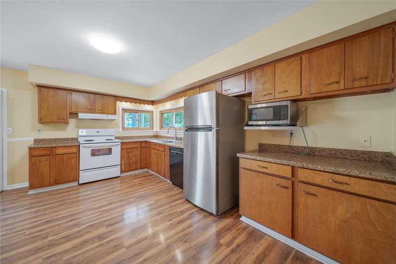 Ranch home tucked away on a quiet dead-end road with views of nearby Thompson Lake! This desirable brick ranch offers the rare blend of privacy, lake life, and proximity to city conveniences, resting on a large corner lot, the property enjoys natural beauty of lake nearby while remaining central to conveniences of Howell and Brighton. Inside, the home’s generous footprint begins with a sun-filled living room with gleaming plank flooring and a floor plan that flows seamlessly into a large kitchen and dining area, ideal for gathering and entertaining. Large family room with brick fireplace. Three bedrooms and two full updated baths. Step outside to discover an inviting deck overlooking the private yard and the attached two-car garage. Highly sought-after location, plus affordable township taxes. Needs some TLC including a roof down the line, but is a great chance for someone to build sweat equity and is an excellent opportunity for a first-time buyer, downsizer, or anyone eager to enjoy the ease of lake life without compromise. Schedule your showing today!