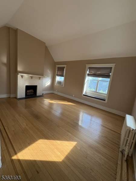 Sun-lit spacious top floor 2BR/1ba corner unit in sought-after Dwight Manor. One of only two units with gorgeous cathedral ceilings, plus a wood burning fireplace in the LR. Pristine hardwood floors throughout, with open views from all windows. Tastefully updated kitchen with granite counters, stainless steel appliances and a separate dinette area. Bathroom is classic pre-war style of tile work and tub. Large bedrooms and living room, freshly painted in great condition. Elevator building with gym and card operated laundry facility onsite in the basement. Convenient reserved outdoor parking space (#8) behind the building included with the lease. Excellent security with intercom system, 24 hour security cameras, and a part-time handyman. Beautifully landscaped grounds and convenient location for NYC bus stops, schools, shops, houses of worship, and just a block away from Downtown Englewood. No smokers or pets please.
