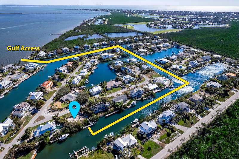 Build your dream home on this cleared lot with direct deepwater Gulf access (no bridges) in the coveted Sanibel Isles community. This is the ultimate location for boating enthusiasts as it features deep water access to accommodate large boats and a wide canal basin for easy navigation. For added convenience, architectural drawings for a custom-built, two-story luxury home are already drafted and available for the new owner, providing a seamless option to begin creating your dream residence. An expansive composite wood dock with a lift runs the entire length of the lot, perfectly positioned to overlook the picturesque canal. Relax in your backyard oasis as you take in the stunning views of natural vegetation, wildlife, and marine life - from dolphins and manatees gliding by to the vibrant birdlife Sanibel is famous for. Don't miss this opportunity to create your coastal retreat in paradise - where world-class boating, fishing, and natural beauty are right at your doorstep!