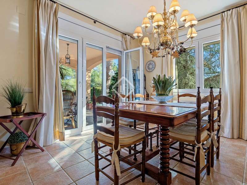 Lucas Fox exclusively presents this comfortable house, built on a single floor with five double bedrooms, located in Mont-roig and on the Bonmont golf countryside , on the Costa Dorada. The property is surrounded by a 1,138 m² Mediterranean garden with bushes and pine trees. The different garden environments surround the property, including a large swimming pool and an annex building with the barbecue. It has a functional layout on a single ground floor to make the daily life of its owners as easy as possible. However, it has an attic or study on the upper floor , which could be configured as a fifth bedroom. On the ground floor, all the main rooms and a cozy entrance hall that connects the day area and the night area are located. From the hall, we reach the living room with fireplace and dining area, as well as direct access to the magnificent porch and garden. From the living room area, there is direct access to the kitchen, which is spacious enough and has an office. In the night area, we have four double rooms with their respective built-in wardrobes. Among them, the main bedroom stands out with its bathroom and a walk-in dressing room. The area is completed with another bathroom and a toilet, that is, a total of three bathrooms for the four bedrooms. A fifth room or study is located on an upper semi-floor. It has a sloping roof and has enough space to telework, play, listen to music, read or simply to locate another guest or service bedroom . Finally, we access the garage, also connected to the main construction and on the ground floor. Request a visit and let yourself be surprised by this unique villa and its surroundings.