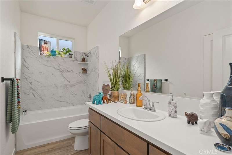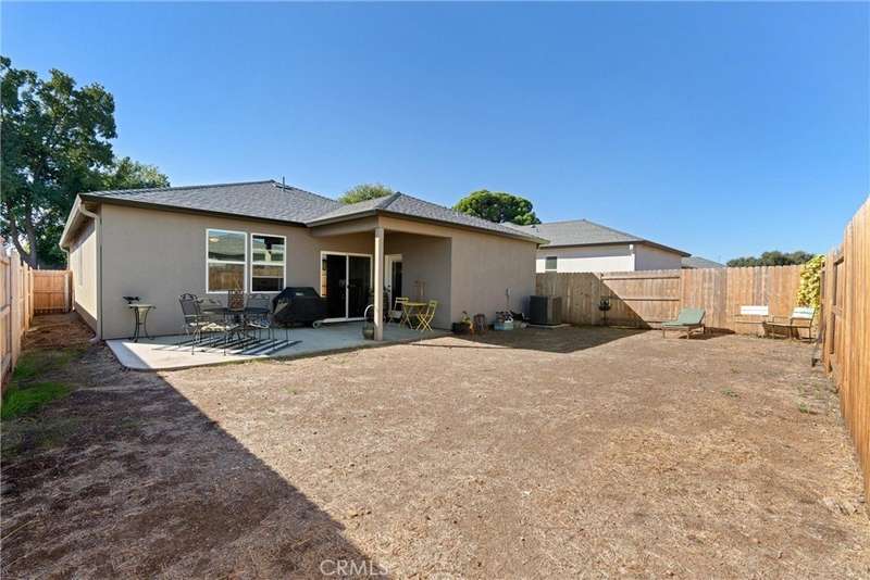 Welcome to modern comfort redefined, your dream home awaits at 328 Gladstone Commons. Built in 2024 by Bill Webb Construction, this stunning 3-bedroom, 2-bathroom home spanning 1,479 sq. ft. sits in the highly sought-after Hick Subdivision, a community of single-story homes known for its quality, thoughtful design, and owned solar systems that keep energy bills low. From the moment you arrive, the curb appeal stands out with its drought-tolerant landscaping and inviting modern exterior setting the stage for the beauty that continues inside. Step through the front door and you’re immediately greeted by an open, airy floor plan filled with natural light. The heart of the home is the living and kitchen area, a bright, welcoming space with tray ceilings that add depth and elegance. The wood-look tile flooring flows seamlessly through the main living areas, while plush carpeting in the bedrooms provides warmth and comfort. The kitchen is a true showstopper. Every detail has been chosen with care, from the quartz countertops and herringbone tile backsplash to the upgraded gas stove and stainless steel appliances that make cooking a joy. Gorgeous cabinetry with contrasting hardware adds a designer touch, and the bar-top seating invites guests to gather around while you entertain. A sliding glass door leads directly to the backyard, extending the living space outdoors and filling the room with natural light. Down the hallway, you’ll find a spacious laundry room with a utility sink and folding counter, two inviting guest bedrooms, and a full bathroom with quartz countertops and modern finishes. At the end of the hall, the primary suite offers a peaceful retreat, featuring private backyard access, a large walk-in closet, and a beautifully appointed ensuite bathroom with dual sinks, a walk-in shower, and elegant tile surround. The backyard is a blank canvas, ready for your imagination, whether it’s a tranquil garden, an outdoor kitchen, or the perfect patio to enjoy Chico’s sunny days. And with owned solar, a tankless water heater, and energy-efficient construction, this home is as smart as it is stylish. Perfectly located just minutes from shopping, schools, and freeway access, this home blends convenience with quiet comfort. Every inch of this property has been thoughtfully curated by an owner who understands how a home should live...beautiful, efficient, and built to last. Come see why this is more than just a new house, it’s a place to truly call home.