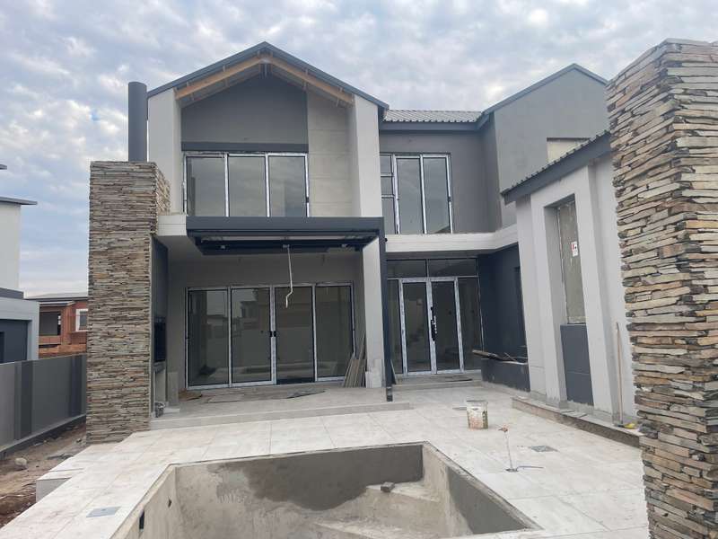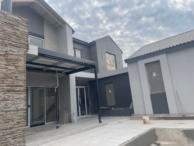 This luxury home offers a perfect combination of modern living, comfort, and versatility, ideal for those seeking a contemporary lifestyle in a sought-after location. Upstairs, you’ll discover three generous bedrooms. The main bedroom is a luxurious retreat with an en-suite bathroom, a walk-in closet, and a private balcony. The second bedroom also features its own private balcony, while both bedrooms one and two share a full, separate bathroom. Upon entering through the double doors, you’re greeted by a spacious open-plan living room, dining room, and kitchen. The kitchen is well-appointed with a separate scullery for added convenience and functionality. To the right of the living and dining areas, you’ll find a comfortable guest bedroom and a separate bathroom, offering privacy and comfort. On the left of the kitchen, a versatile staff room with a full en-suite bathroom is perfect for use as a study or as additional living space. At the end of the hallway, you can directly access the double garage. Property Features 4 Bedroom 3 bathrooms 2 garage Main bedroom en-suite with balcony 2nd and 3rd room with shared bathroom Guest room with en-suite bathroom Kitchen open plan Scullery Lounge Dining room Boma area Patio Pool