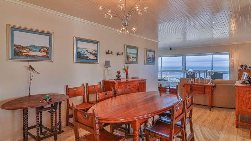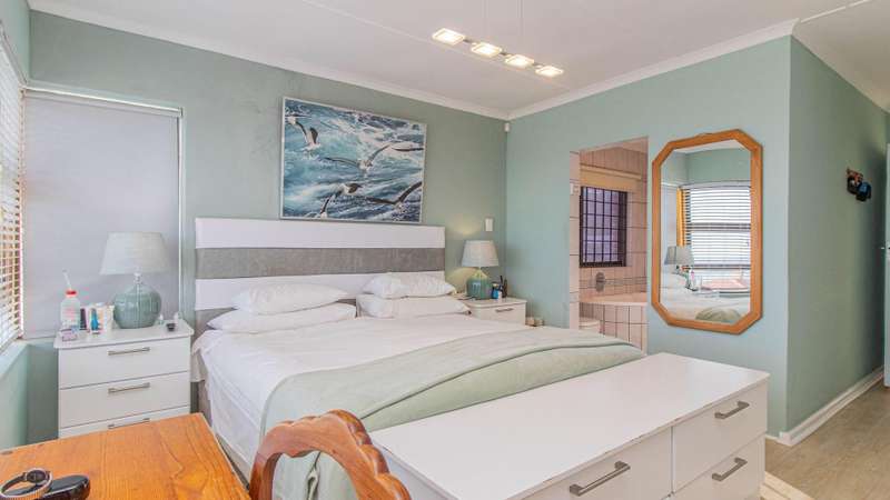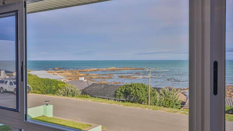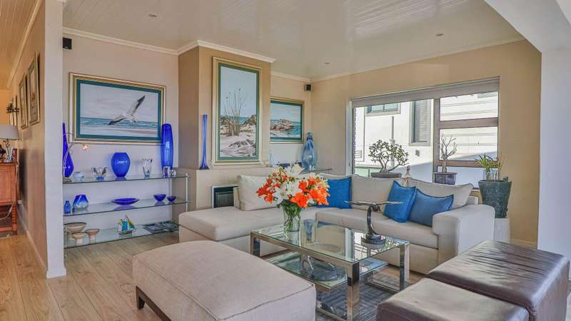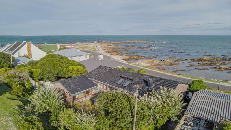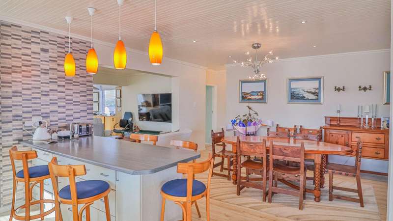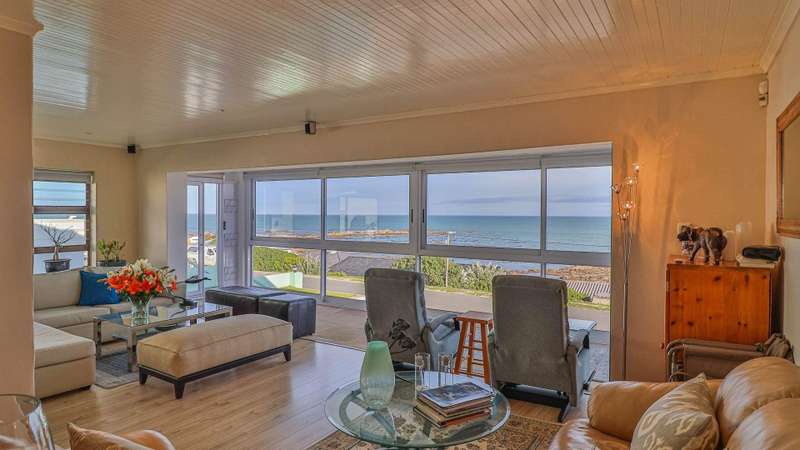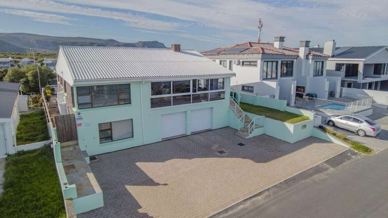 Dual Mandate. A south west facing well presented home enjoying an elevated location on the second street from the coast. The ground floor comprises a bedroom with en suite leading to the double garage with automated doors and store room. At the rear of the house is a store/workshop (50sqm). To the first floor is a very spacious open plan sitting /dining room and a well appointed fully fitted kitchen with adjoining scullery/laundry. The sitting room includes a fireplace and full ocean views. Beyond the dining area is a second sitting room and large study area includes a built in braai. Two bedrooms share a full bathroom. The main bedroom with en suite is located at the front of the house. The property is fenced on three sides and further benefits from fibre connection, security lights, security beams, trellidoors, inverter of 8.5KW, solar panels and battery operated blinds. Viewing recommended.