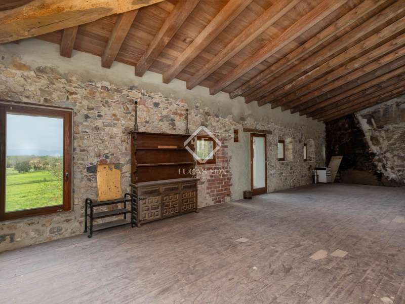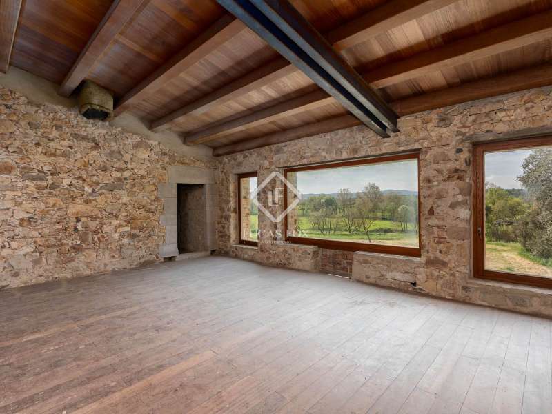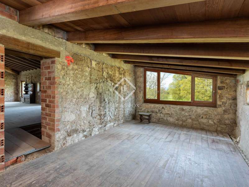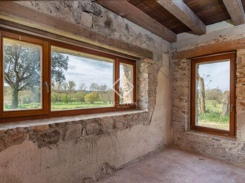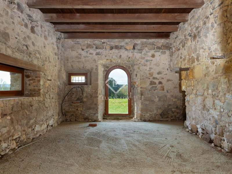 Lucas Fox is pleased to present Mas Orri, an authentic Catalan country house located in an incomparable natural setting, surrounded by fields and nature that offer maximum privacy and tranquility. The property sits on an impressive 4.5-hectare plot of land, offering ample space for private use and the development of various projects. The country house stands out for its solid structure, which has already been fully consolidated, and for having a completely new roof with thermal insulation, for greater energy efficiency and protection from the elements. Furthermore, the entire structure has been renovated to allow for the existing renovation project. Another of the great values of this property is the interior and exterior carpentry: all the wood used inside the property, as well as the windows, is teak, a noble wood recognized for its strength, durability and natural beauty. La Finca has access to water and electricity, making it easy to refurbishment and adapt to modern needs. This property represents a unique opportunity to acquire a charming country house and customize it as a first or second home, or as an investment project. Its rural setting, yet easy access to both the Costa Brava and the city of Girona, makes this country house a very special addition to the current market.
