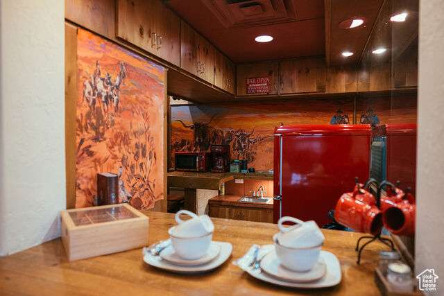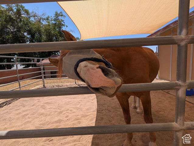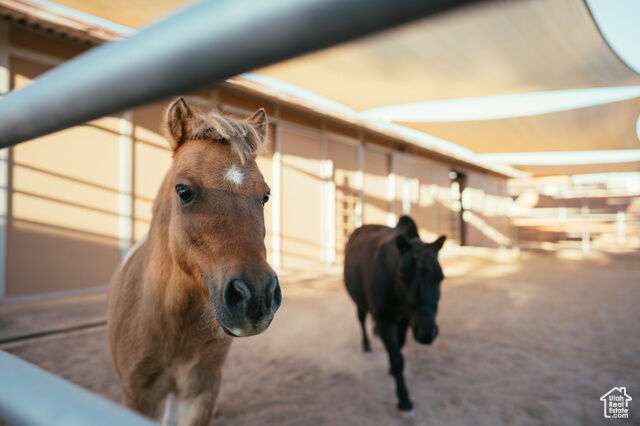 Horse Haven Ranch is an equestrian's utopia! This turnkey abode has flourished as a horse B&B under its current owners, who crafted an immaculate and peaceful equine sanctuary. Every detail of the property reflects thoughtful enhancements. The premier 15' raised center aisle barn, 2160 sf, boasts approximately $100,000 in bespoke upgrades, including world-class Stable Comfort (like WEC) orthopedic flooring (no need for shavings!) cooling misters, high-efficiency fans, awnings, shades, and a swamp cooler for those warm summer days. Illuminated stalls, a hot/cold wash bay, a bathroom, and Prodex insulation elevate the barn's functionality and charm. In the 38-foot round pen and 20x24 runs, the footing is pristine washed sand. The newly constructed garage (2022), crafted by Mancave, features 10-foot doors and an elevated ceiling height. The 2025 carport is also by Mancave. For your canine friends, a dedicated, fully enclosed dog retreat boasts a generous shaded patio and premium, professionally installed turf-a $20,000 enhancement. The 2700 sf, four-bedroom, two-bath residence is graced with beautiful appointments, a gourmet kitchen with a professional-grade refrigerator and freezer, stainless appliances, and granite counters, custom cabinetry, solid wood doors throughout the home, a luxurious primary suite, all with serene views over the horses or to the red-rocked mountains beyond. The second primary suite, on the main level, is straight out of a magazine! With its private entrance, dedicated office, gorgeous kitchenette, hardwood floors, and cowboy curated finishes, it's the quintessential retreat for in-laws or guests. Nestled in a vibrant equestrian community, Horse Haven Ranch is a short ride from some of the best trails: Snow Canyon, Rim Trail, Turtle Wall, Chuckwalla, and other trail loops. This ranch's meticulous, low maintenance design means more time in the saddle! Owners recently converted the property to sewer. All information and measurements are provided as a courtesy; buyers should verify all measurements and zoning.