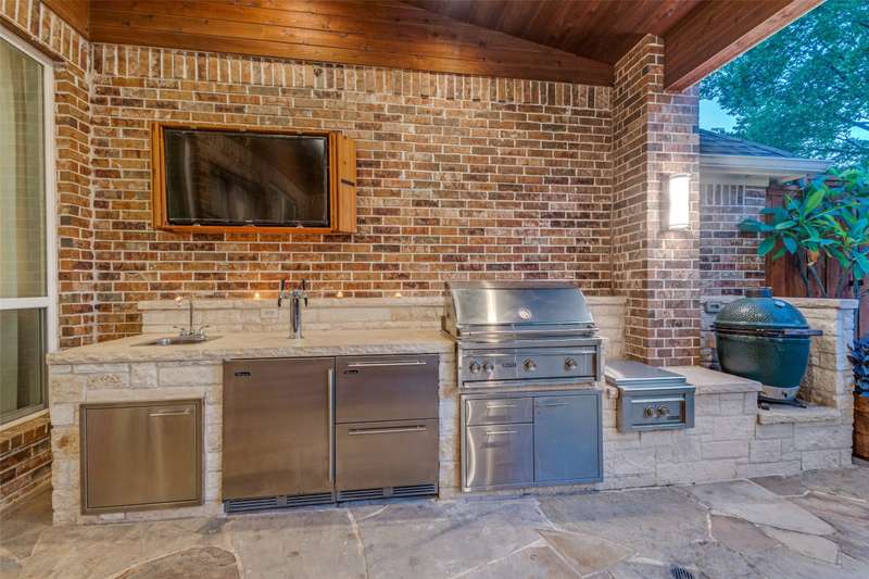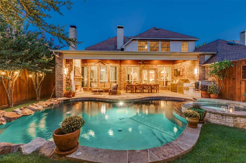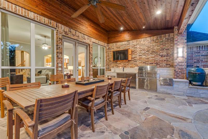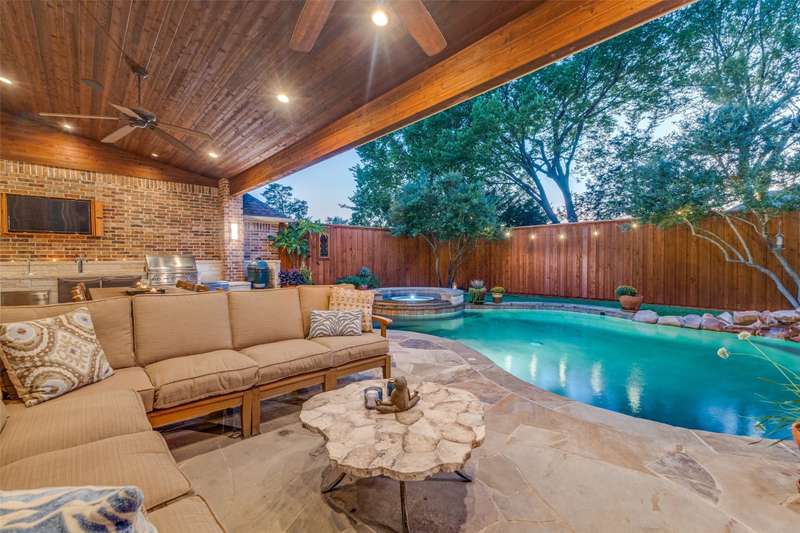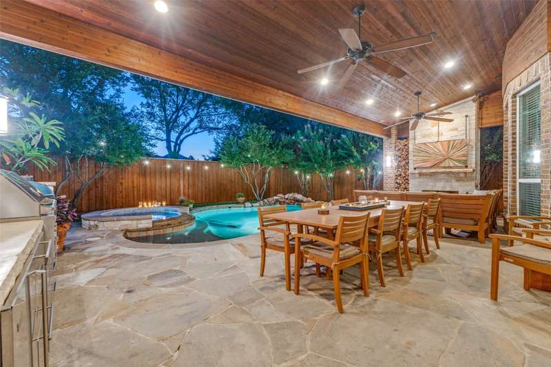 MULTIPLE OFFERS RECEIVED. Fantastic Huntington Home with a resort-style backyard in a well positioned lot at the back of a quiet, serene neighborhood surrounded by mature trees. This home offers a flowing floor plan with elegant formal living and dining rooms, plus a private study featuring French doors and a full wall of custom built-in cabinetry and kitchen overlooking the large family room. The kitchen showcases an island, granite countertops, a large walk-in pantry, and a gas cooktop. Designed for both daily living and entertaining, it opens to the spacious living room and features a butlers pantry that creates a graceful flow to the dining room. Level 2 has a large Game Room, 2 bedrooms with a Jack & Jill style bath, as well as a private bedroom with ensuite bath. Step outside to your private oasis: a heated pool & spa with waterfall, an expansive covered patio offering multiple entertaining zones (including a cozy fireplace seating area and ample room for outdoor dining), a wood-burning Austin stone fireplace, rich wood patio ceilings, and two mounted TVs with custom covers. The outdoor kitchen is complete with a sink, Lynx 3ProSear grill and Lynx power burner, 2 Perlick refrigerator drawers & Perlick dual tap kegerator, metal storage drawers, and a hidden hose reel with water spout for easy plant care. Also, find plantation shutters, dual staircases, hardwood floors with commercial coating for scratch resistance, carpet replaced in September 2025, a tankless water heater, Trane HVACs and a whole-house filtration system. Located close to 3 golf courses, nearby 400-acre Breckinridge Park, excellent medical facilities, and minutes from Geo Bush Turnpike.